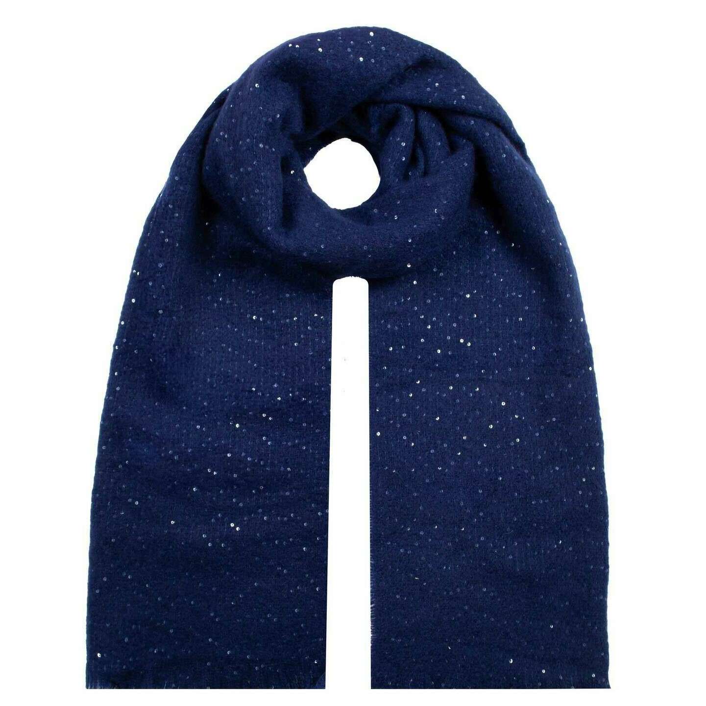 Manufactured from 100% polyester is this navy women's sequin scarf by the designer Dents. It measures 180cm(height) x 50cm(width). Also the navy scarf is designed in a plain pattern, It is recommended to hand wash only to keep this scarf in good condition. All the scarves come complete with dents tags. The Dents Sequin Scarf - Navy features a fun sequin navy design. This scarf is cute and bold, perfect for cold weather and adding a bit of sparkle to an everyday look. Also includes classic tassels for an added unique touch.