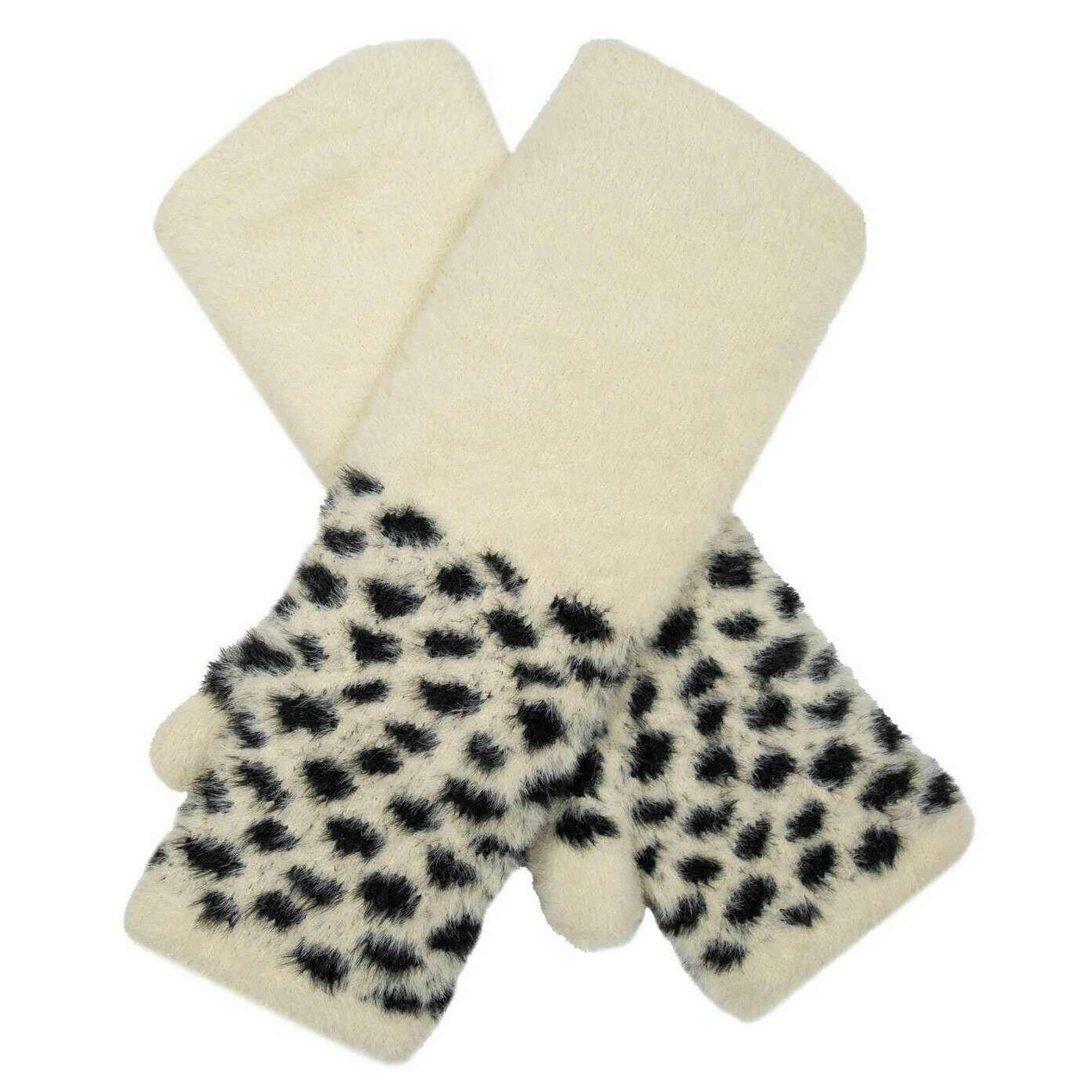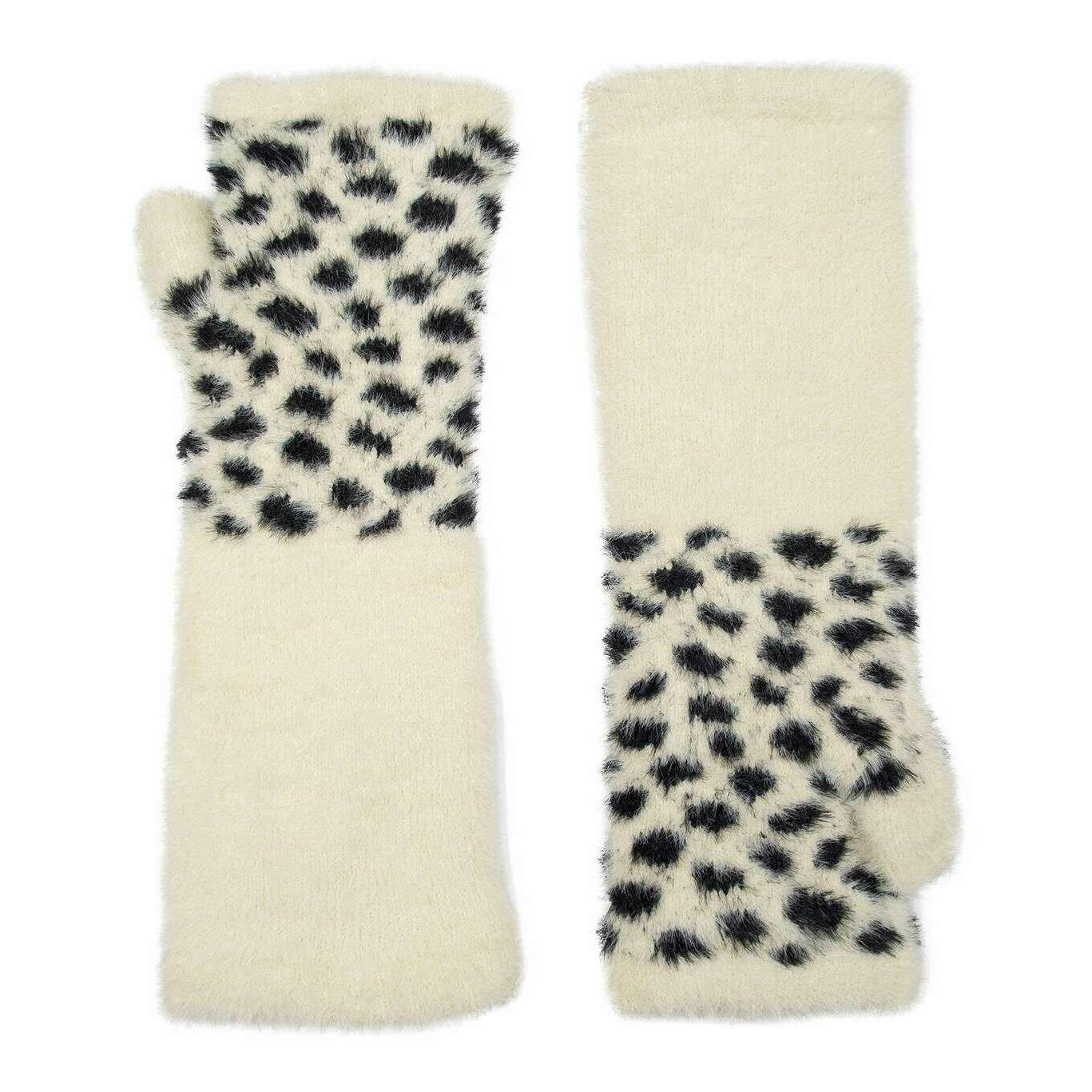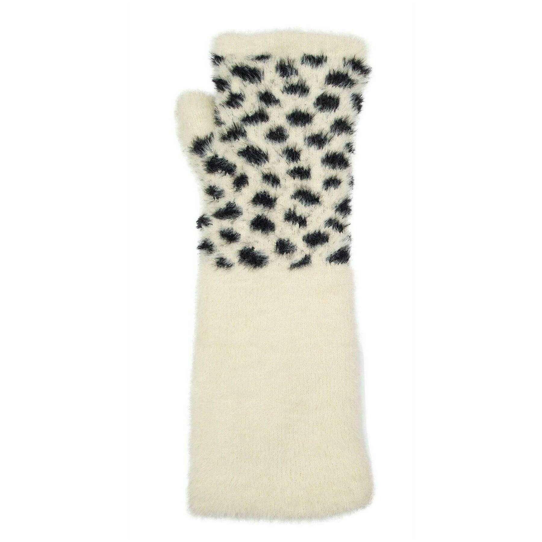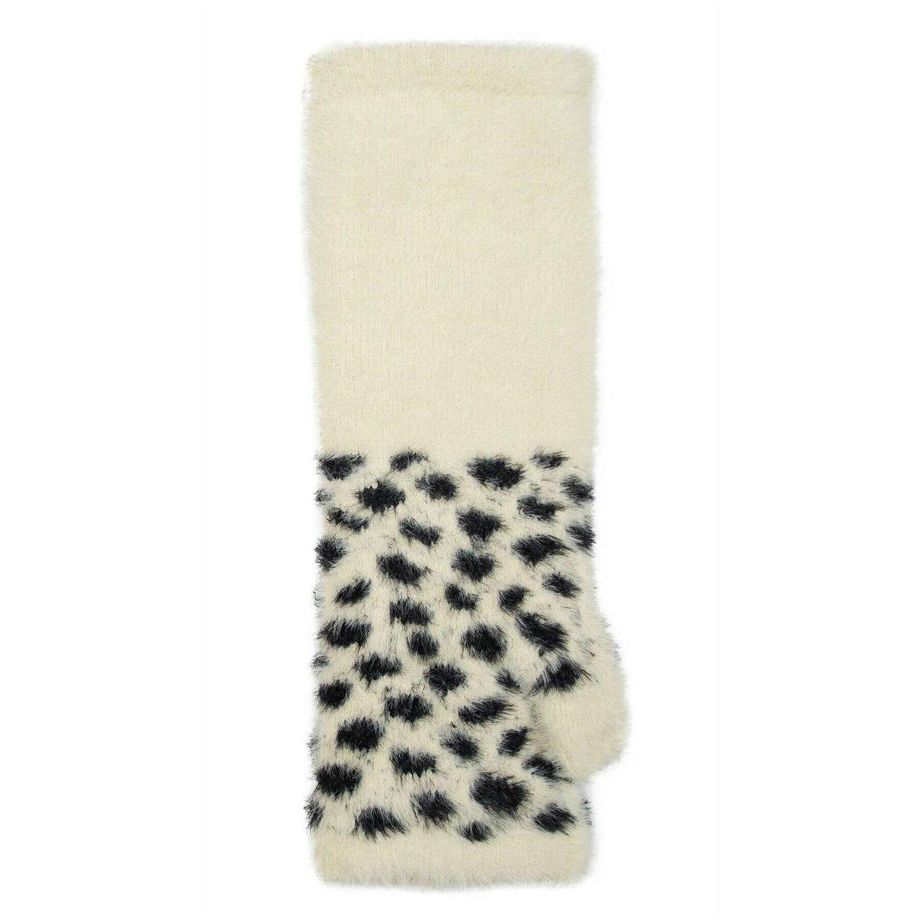 Dents Spotted Feather Yarn Knitted Wrist Warmers - Ivory White