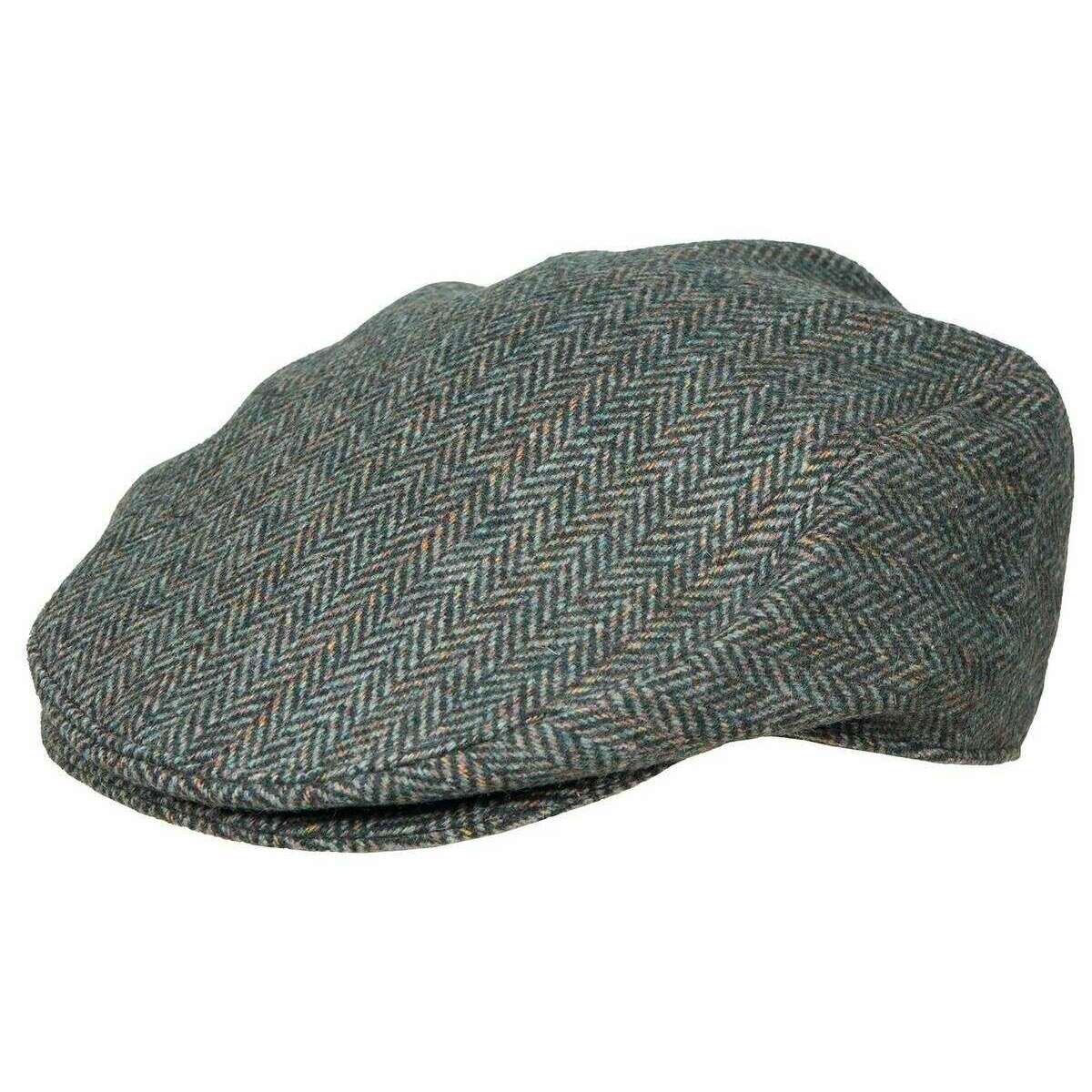 Dents Thirlmere Herringbone Tweed Flat Cap - Olive Green