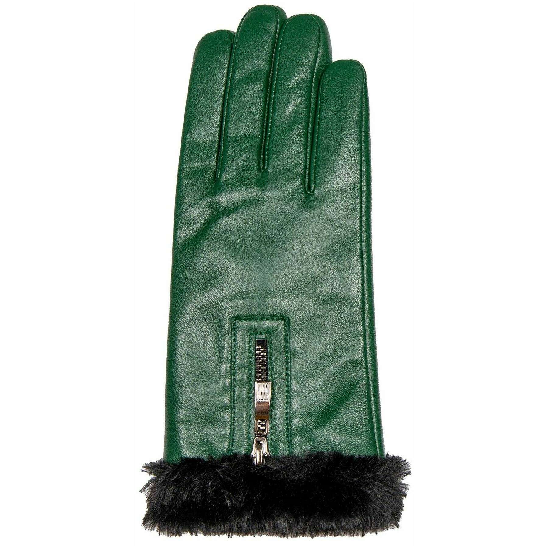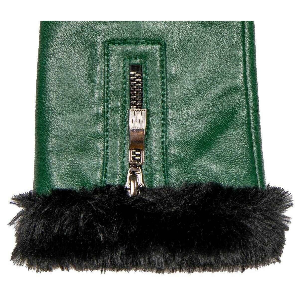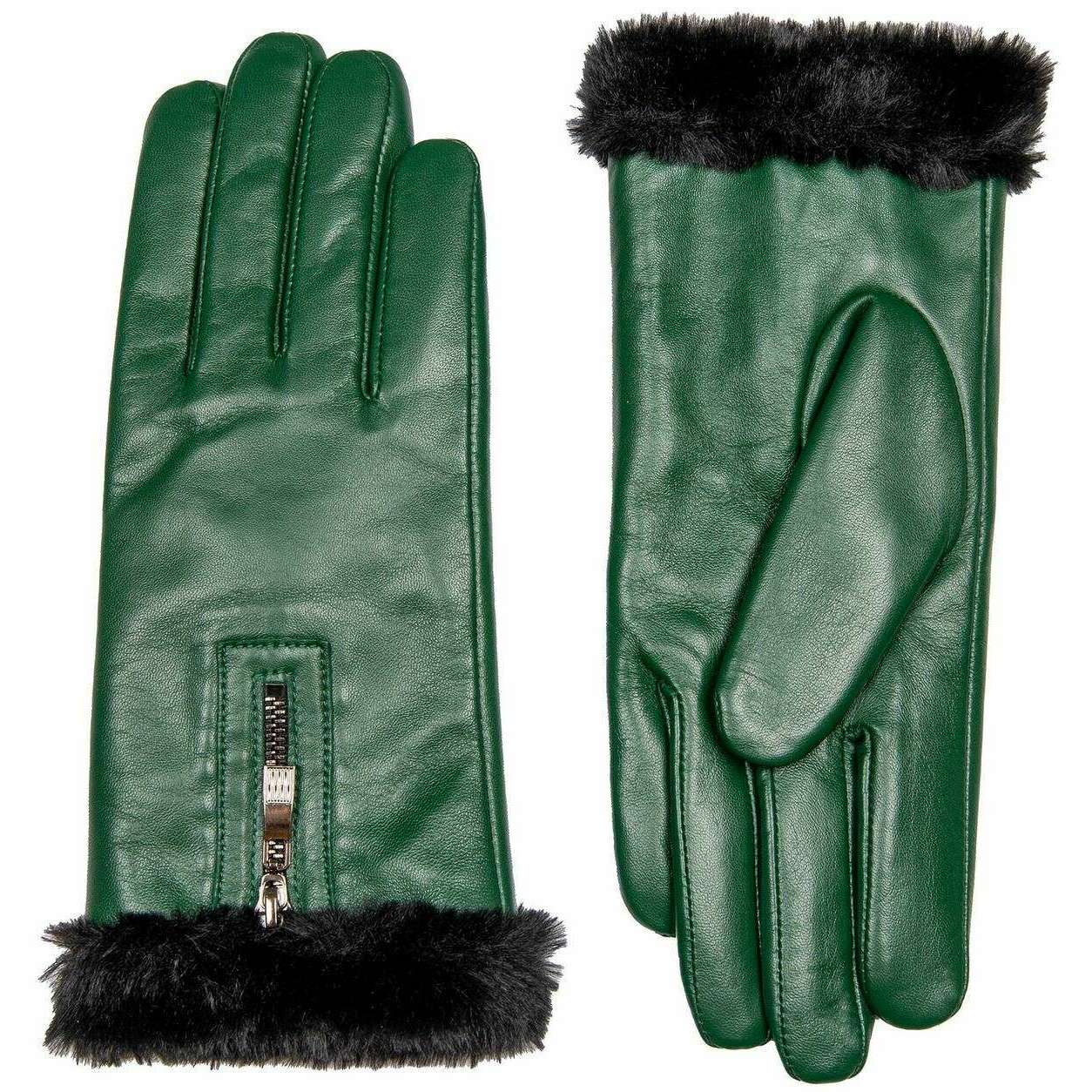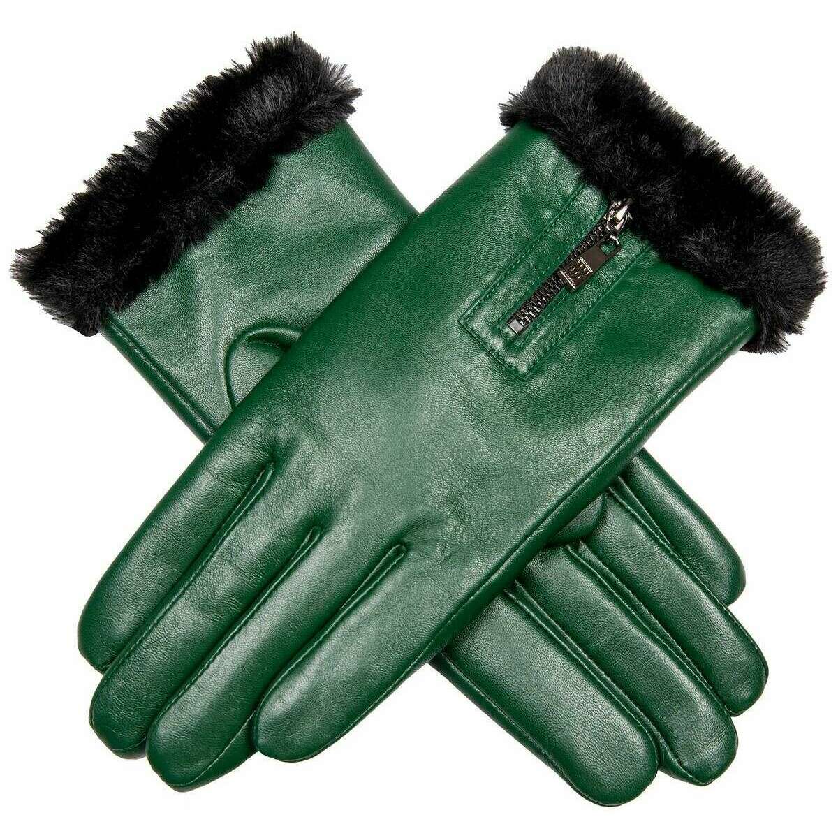 These women's yasmin cuff leather gloves by the brand Dents are made from 100% hairsheep leather and polyester faux fur lining and are showcased in green. Also the forest green gloves are designed in a plain pattern, All the gloves come complete with dents tags. The Dents Yasmin Cuff Leather Gloves - Forest Green are a modern pair with a decorative zip touch and soft faux fur cuff and lining giving you a stylish look that is sure to attract attention whilst keeping your hands warm and super comfortable. They are beautifully soft and smooth as well as having touchscreen technology. These are the perfect luxurious set to add to your winter wardbrobe.
