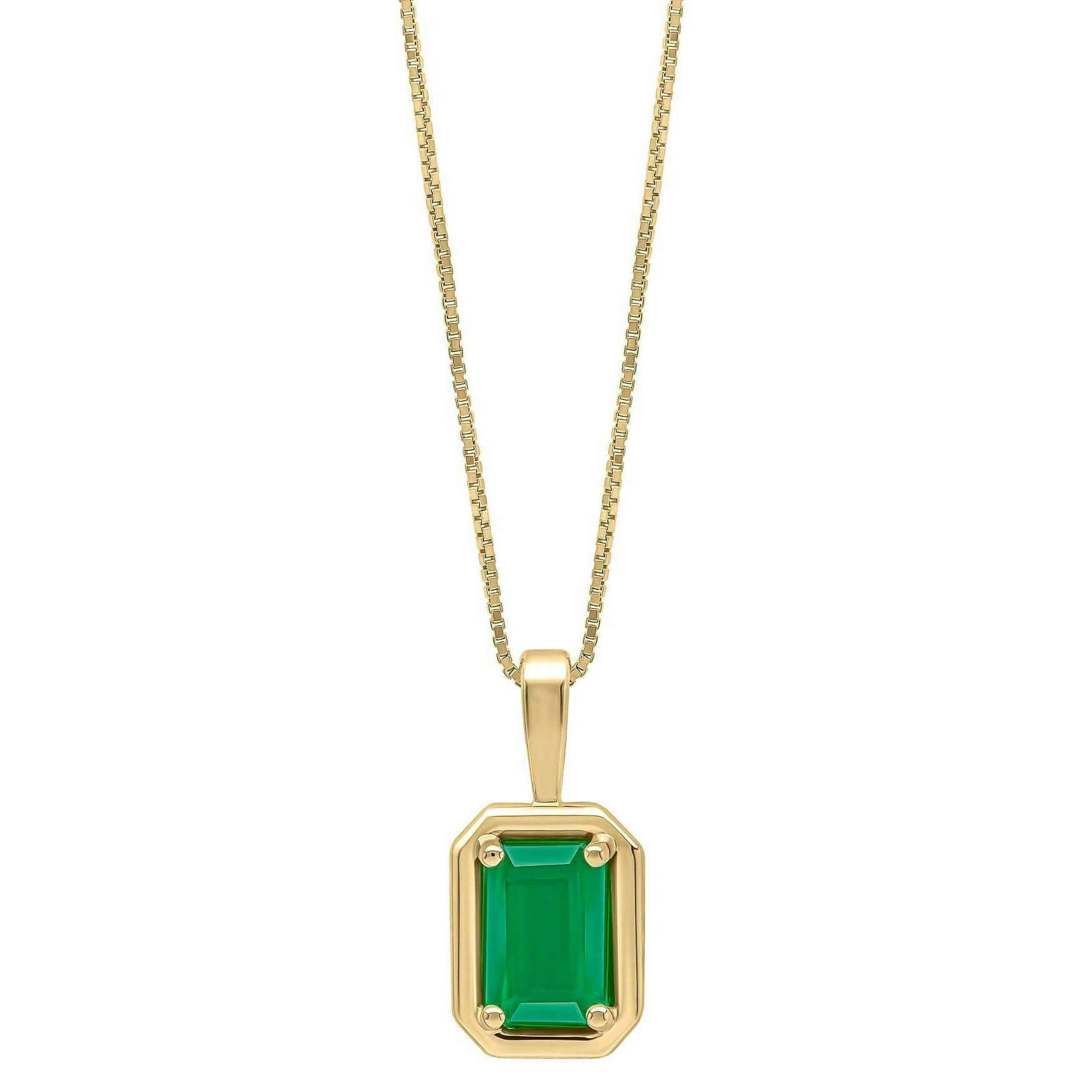 Elements Gold Chunky Border Emerald 9ct Gold Pendant - Green