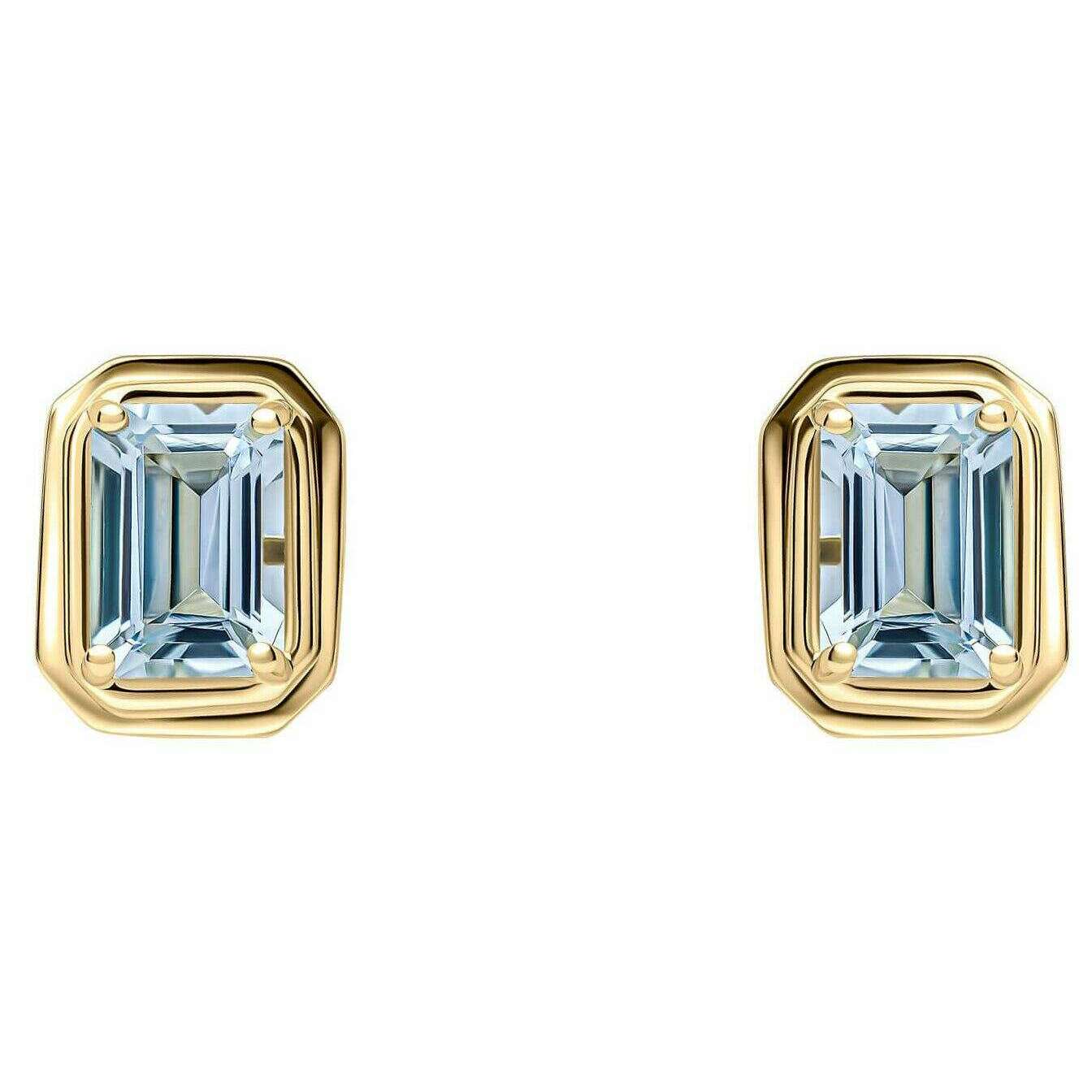 Elements Gold Elongated Octagon Aquamarine 9ct Gold Stud Earrings - Gold/Blue