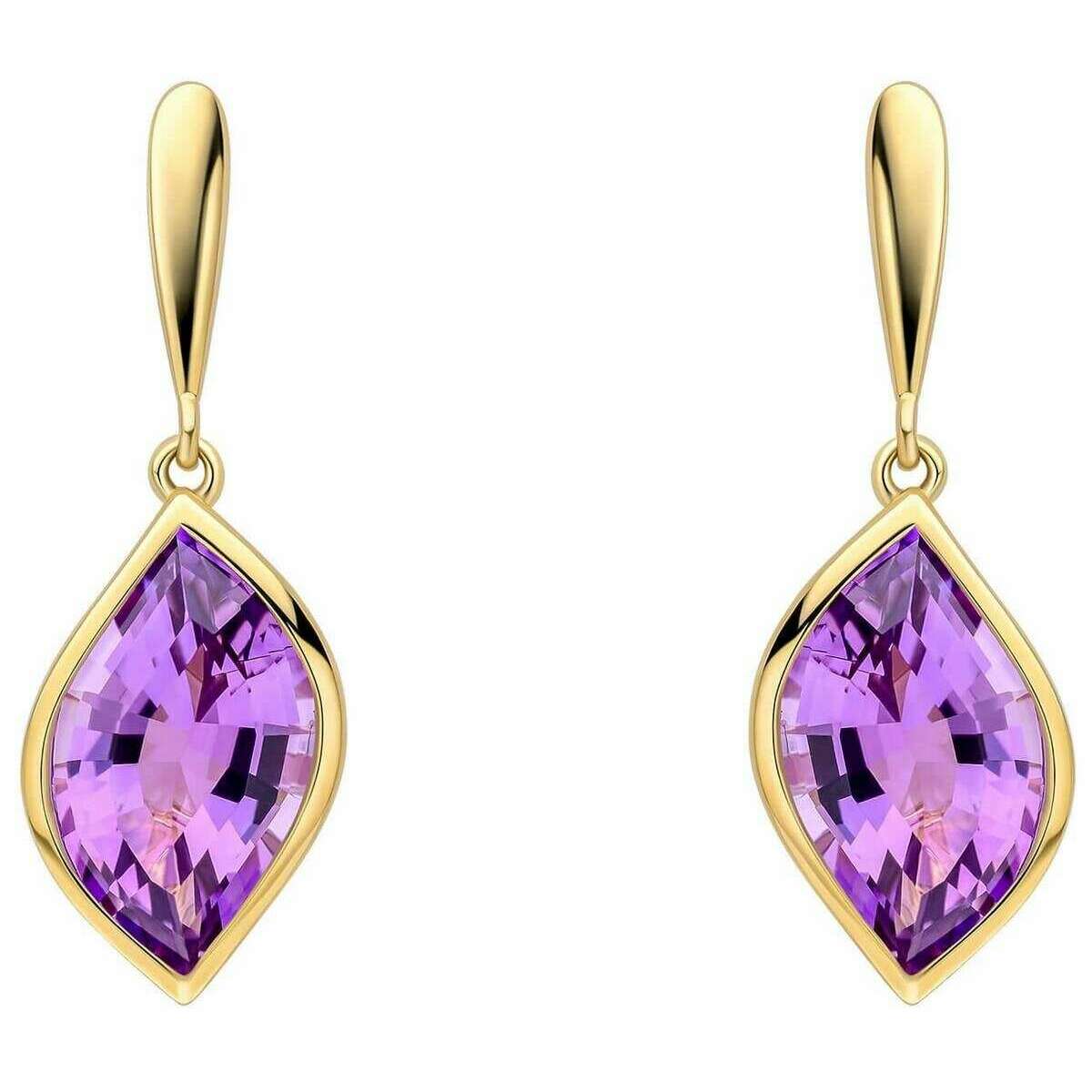 Elements Gold Flame Cut Amethyst 9ct Gold Earrings - Gold/Purple