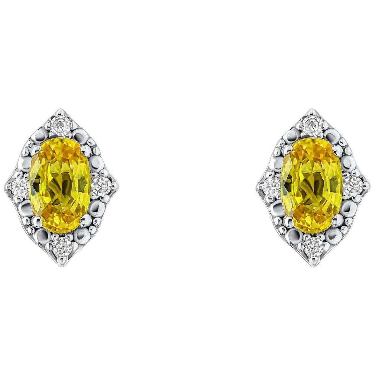Elements Gold Oval Sapphire and Diamond 9ct Gold Earrings - Gold/Yellow