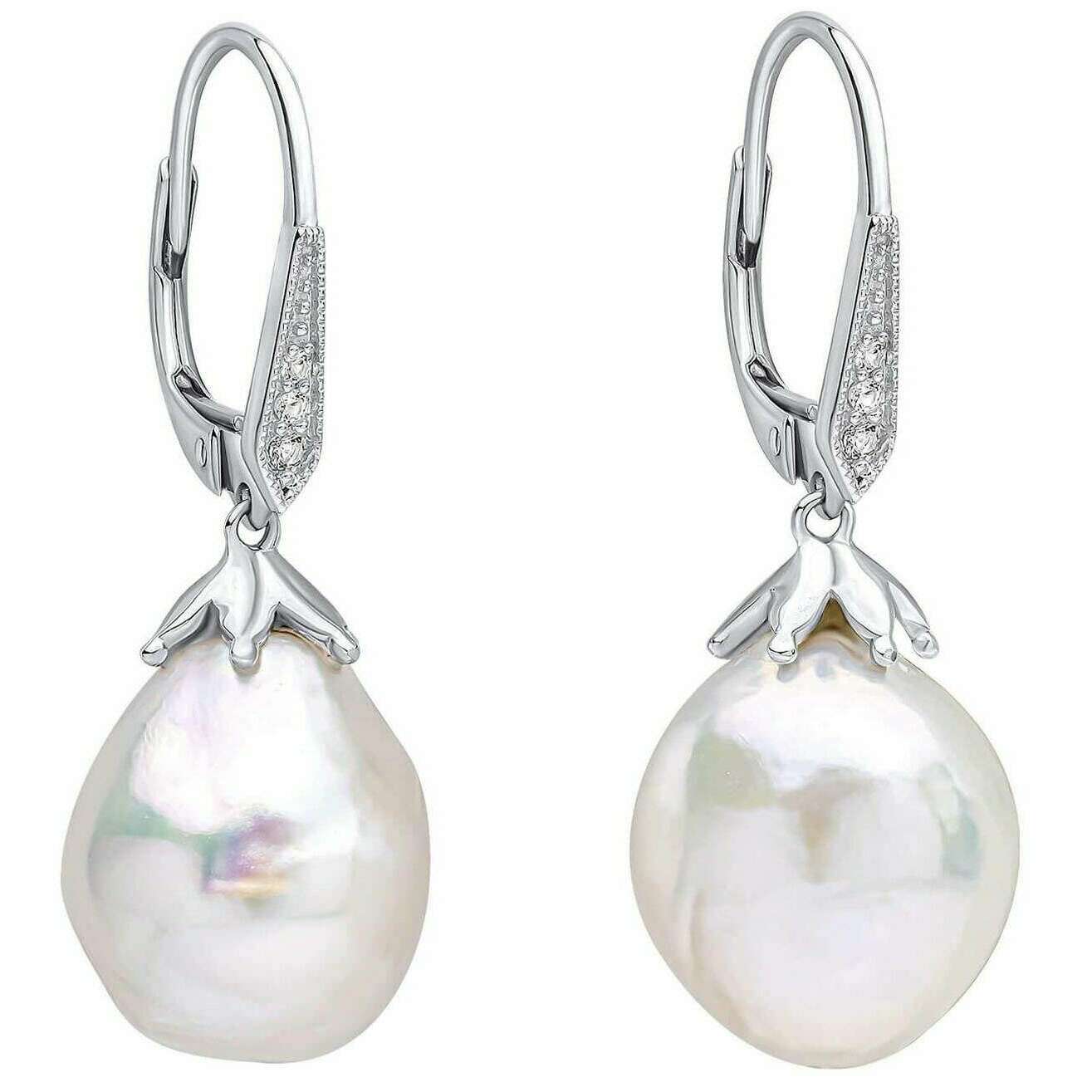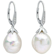Elements Gold Oversized Baroque Pearl and Topaz 9ct Gold Earrings - Silver/White