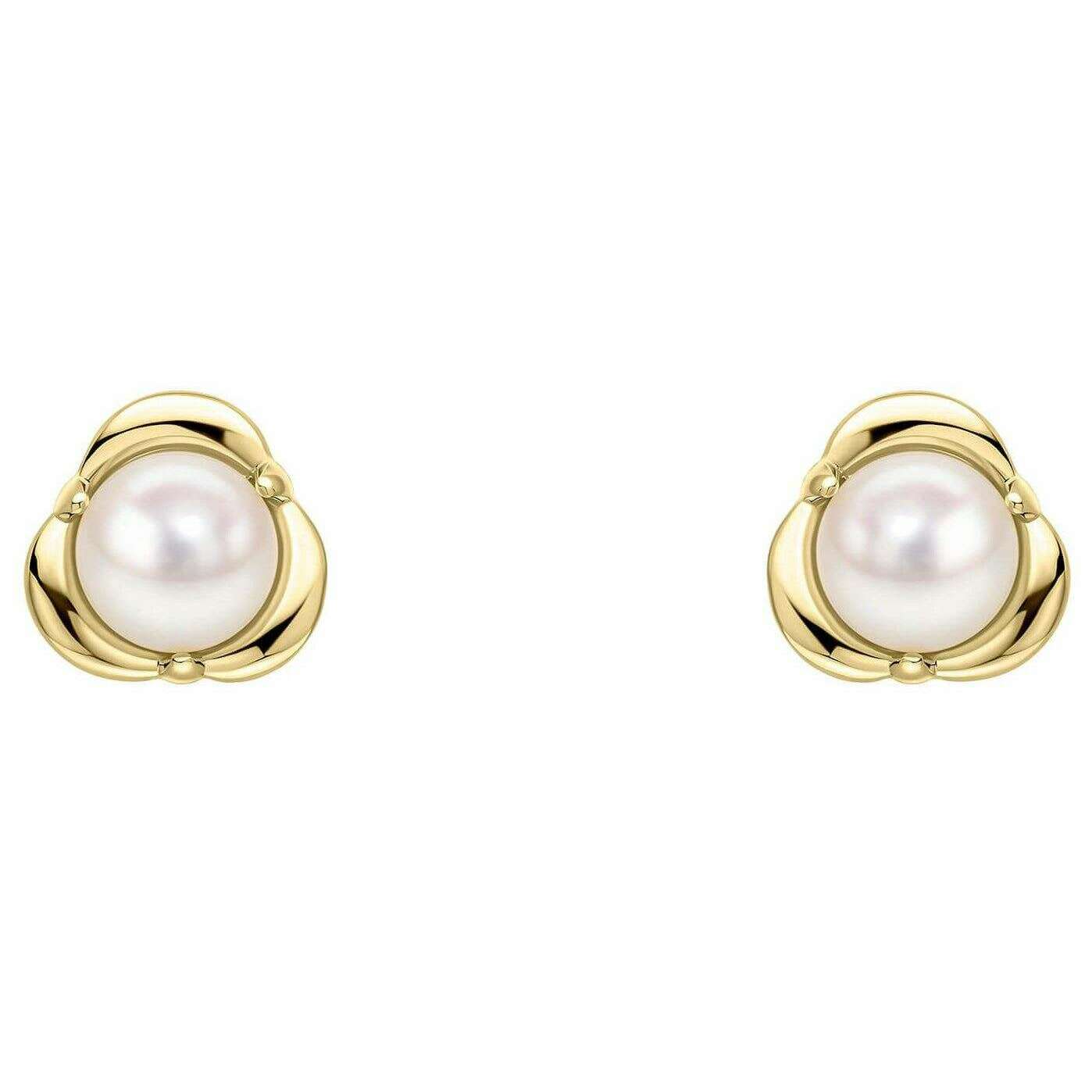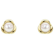 Elements Gold Petal Set Pearl 9ct Gold Earrings - Gold/White