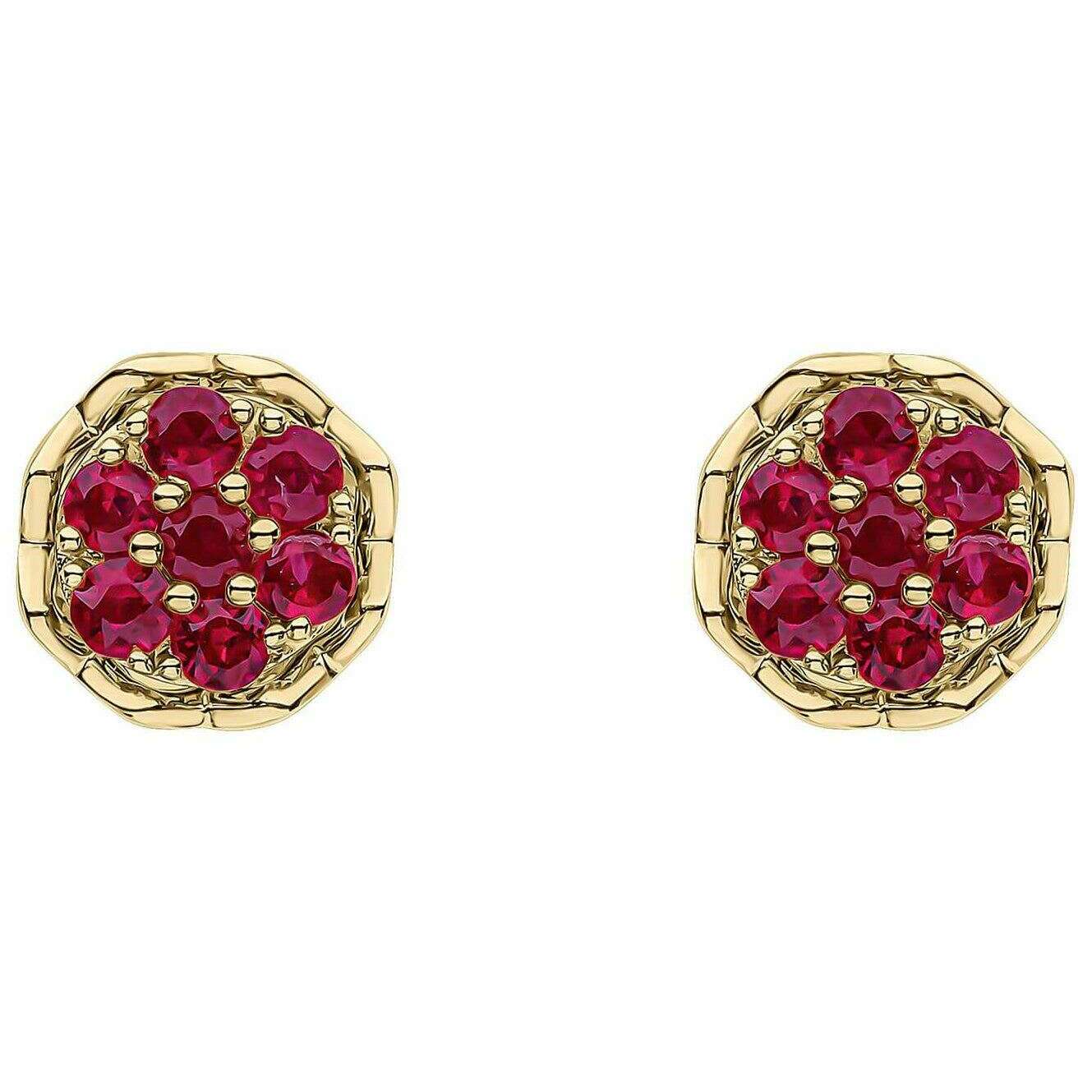 Elements Gold Seven Stone Ruby Cluster 9ct Gold Earrings - Gold/Red