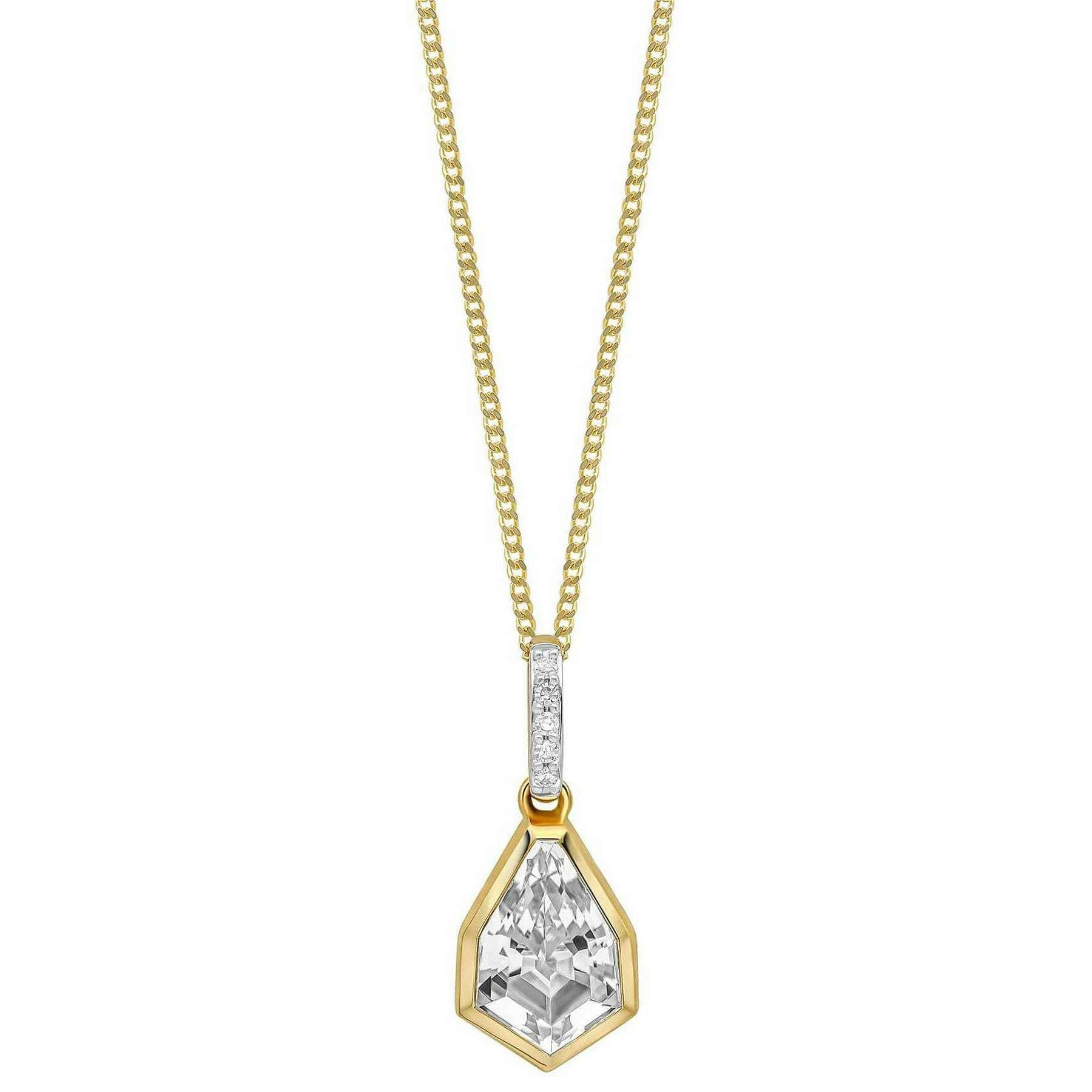 Elements Gold Shield Cut Topaz 9ct Gold Pendant - Gold/Silver