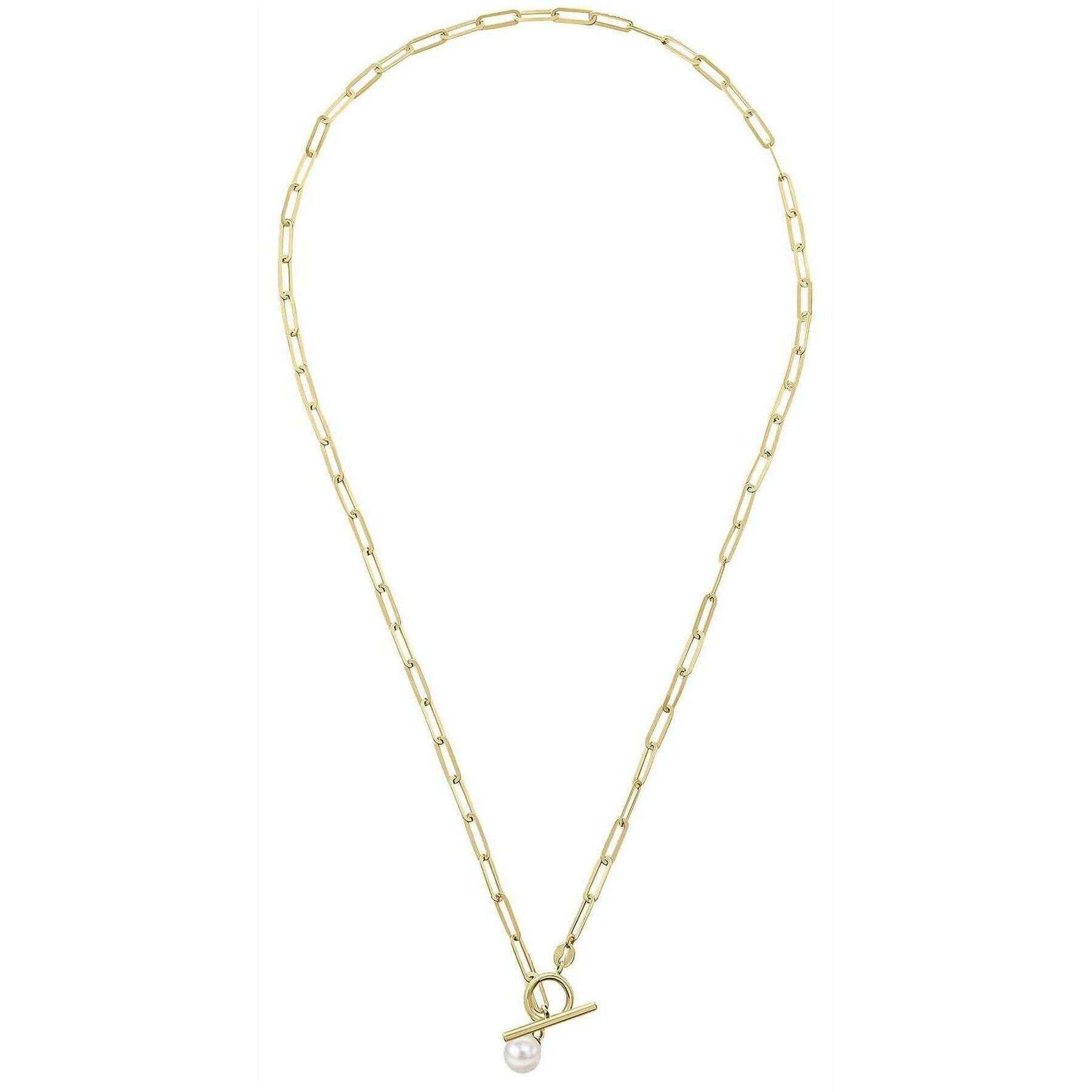 Elements Gold T Bar Chain with Freshwater Pearl 9ct Gold Necklace - Gold/White