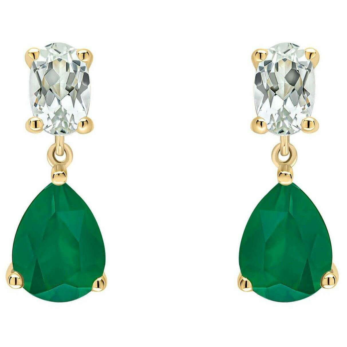 Elements Gold Toi et Moi Amethyst and Onyx 9ct Gold Drop Earrings - Gold/Green