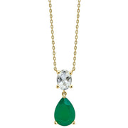 Elements Gold Toi et Moi Amethyst and Onyx 9ct Gold Drop Necklace - Gold/Green