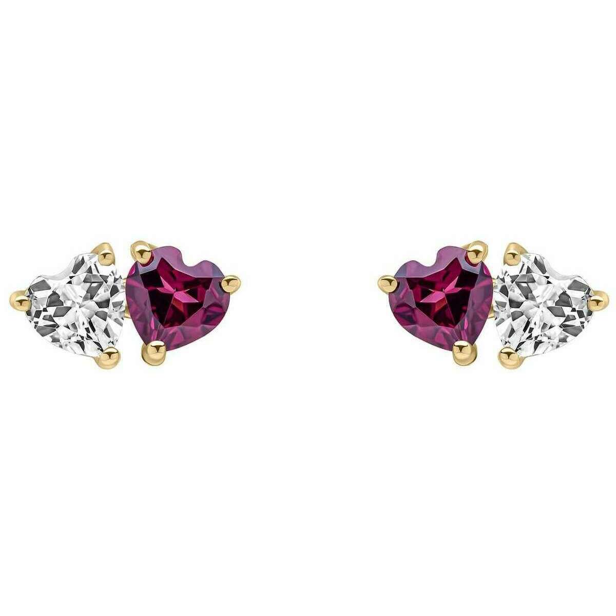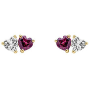 Elements Gold Toi et Moi Heart Garnet and Topaz 9ct Gold Earrings - Gold/Red