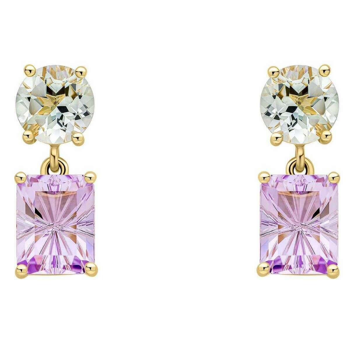 Elements Gold Toi et Moi Quartz Amethyst 9ct Gold Earrings - Gold/Lilac Purple