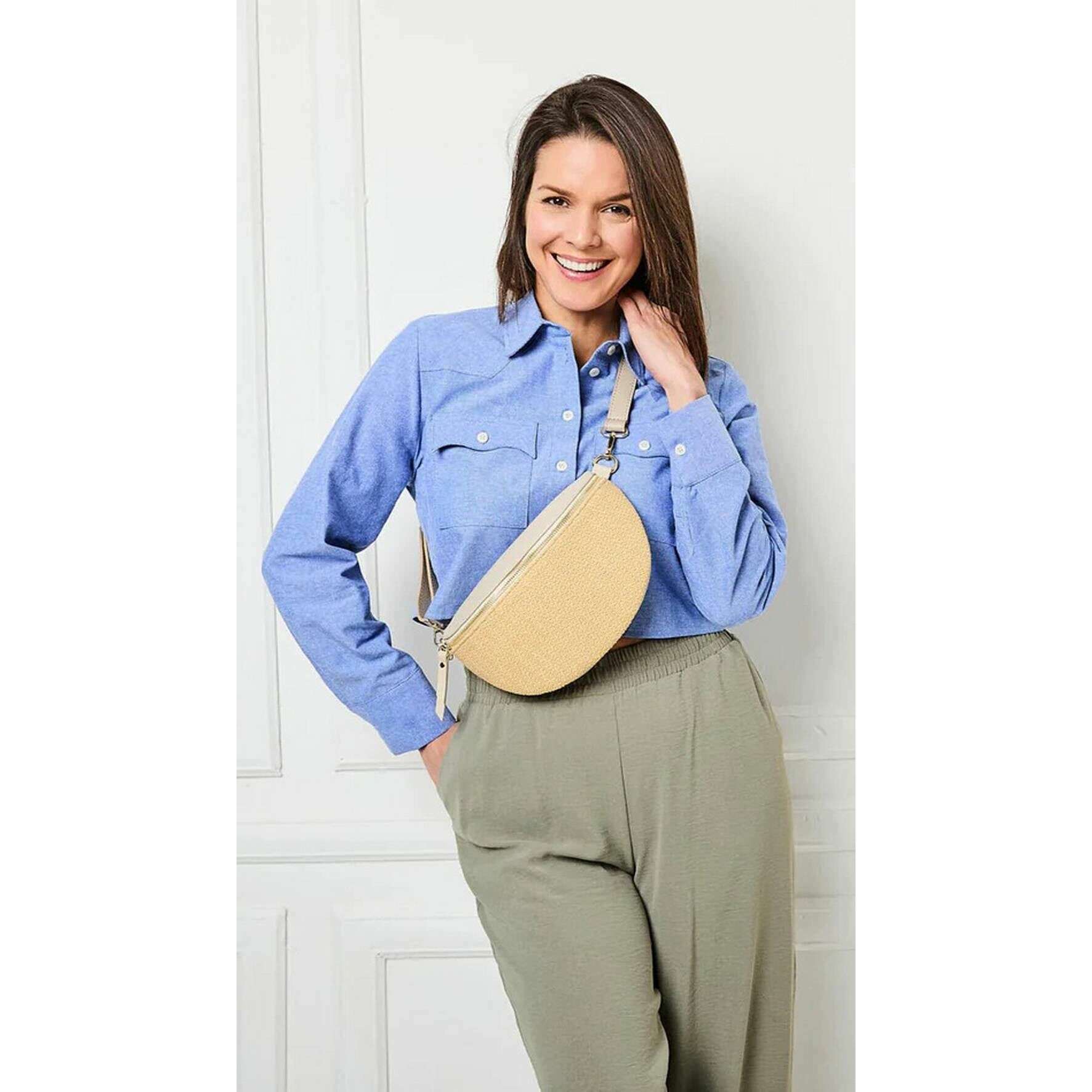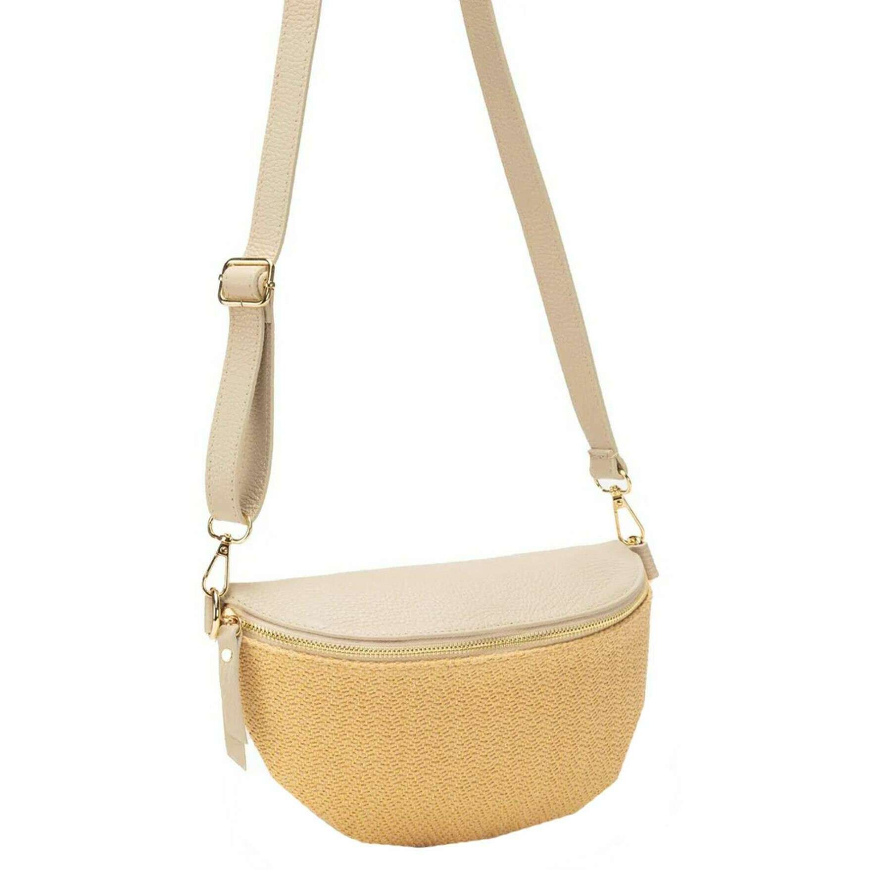 This well made women's raffia sling bag from Elie Beaumont comes in a stone beige colour and is manufactured from 100% geniune leather and raffia weave. It measures 17cm(height) x 24cm(width) x 7.5cm(depth). Elie Beaumont have made this raffia sling bag in Italy. All the bags come complete with elie beaumont packaging. The Elie Beaumont Raffia Sling Bag - Stone Beige is a perfect blend of Italian craftsmanship and modern design with its on-trend, natural weave design. Crafted in Italy from luxurious genuine leather and detailed with a natural weave-effect raffia, this compact sling bag is designed for life on the move. Its sleek silhouette and thoughtful layout make it both stylish and functional. A full-length external pocket offers easy access to everyday essentials, while an interior pocket keeps cards and cash secure yet within reach. The versatile single-strap design allows the bag to be worn across the body or slung over one shoulder, adapting effortlessly to your day. Finished with a matching leather strap, this raffia sling is a truly multifunctional accessory that brings elegance and practicality to every outfit.