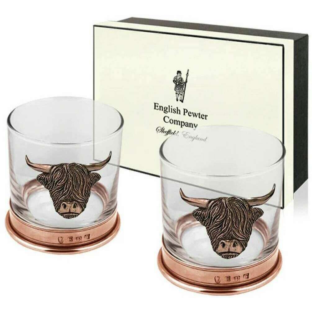 Designer English Pewter Company has brought you this unisex copper and glass drinkware and glassware using copper orange/clear tones. It measures 9cm(height). English Pewter Company have made this 11oz double highland cow tumbler set in Britain. All the drinkware and glassware comes complete with english pewter company packaging. The English Pewter Company 11oz Double Highland Cow Tumbler Set - Copper Orange/Clear are a superb way to enjoy your favourite drink with their sleek design and timeless charm. The bases have a pewter banding which will not tarnish over time so you can keep it in the family for years to come. They also adorn a gorgeous pewter badge adding the perfect finishing touch. Gift these to someone special.