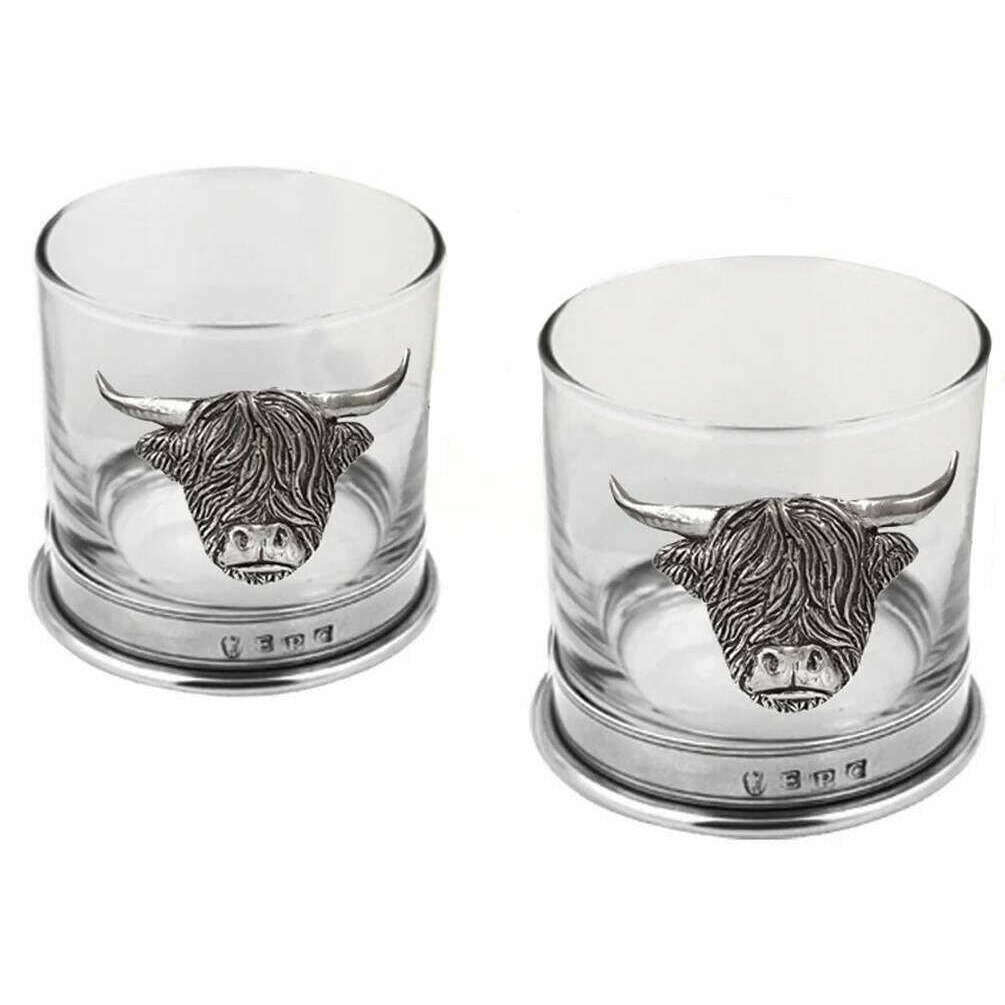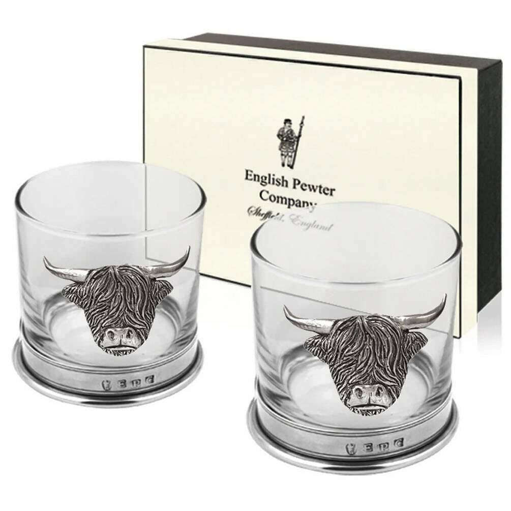 This well made unisex 11oz double highland cow tumbler set from English Pewter Company comes in a silver/clear colour and is manufactured from pewter and glass. It measures 9cm(height). English Pewter Company have made this 11oz double highland cow tumbler set in Britain. All the drinkware and glassware comes complete with english pewter company packaging. The English Pewter Company 11oz Double Highland Cow Tumbler Set - Silver/Clear is a superb way to enjoy your favourite drink with its sleek design and timeless charm. The base has a pewter banding which will not tarnish over time so you can keep it in the family for years to come. It also adorns a gorgeous pewter badge adding the perfect finishing touch. This would make a thoughtful gift.