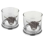 English Pewter Company 11oz Double Highland Cow Tumbler Set - Silver/Clear