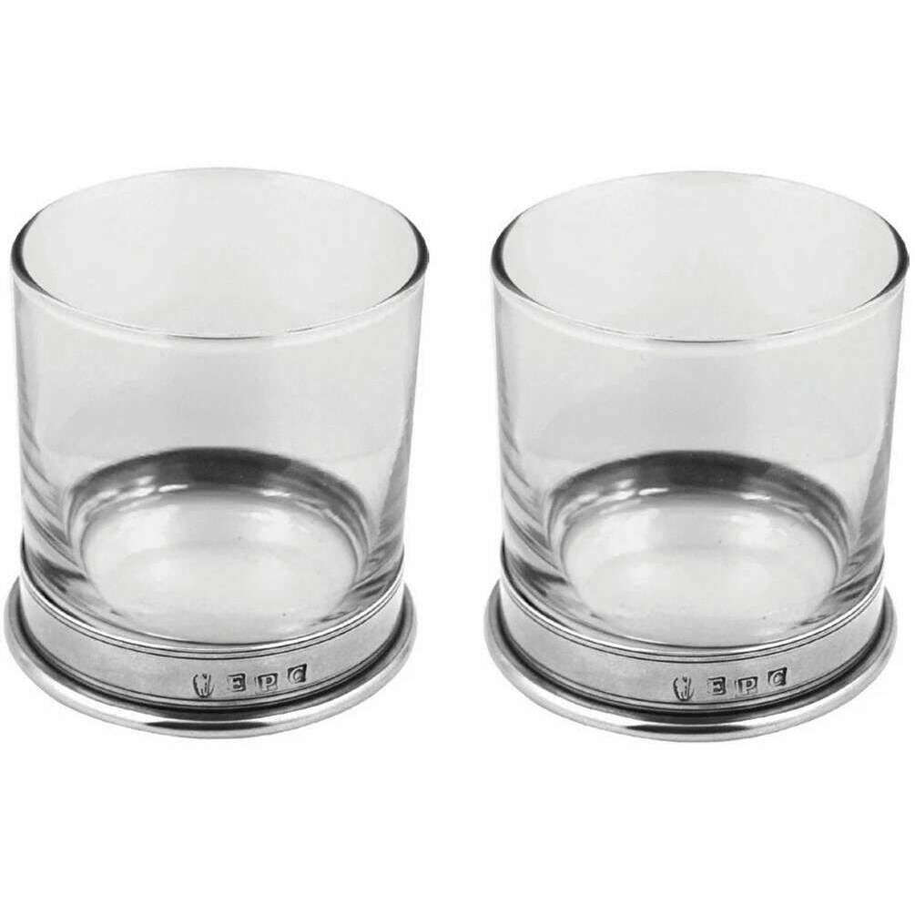 Perfect for men or women is this English Pewter Company clear/silver 11oz double vogue tumbler set, it is also made from pewter and glass. It measures 9cm(height). It is recommended to wipe clean to keep this drinkware and glassware in good condition. All the drinkware and glassware comes complete with english pewter company gift box. The English Pewter Company 11oz Double Vogue Tumbler Set - Clear/Silver are a superb way to enjoy your favourite drink with their sleek design and timeless charm. The bases have a pewter banding which will not tarnish over time so you can keep it in the family for years to come. They will level up your hosting game, ensuring your guest are catered with premium glassware adding the perfect finishing touch to the occasion. Gift these to someone special.