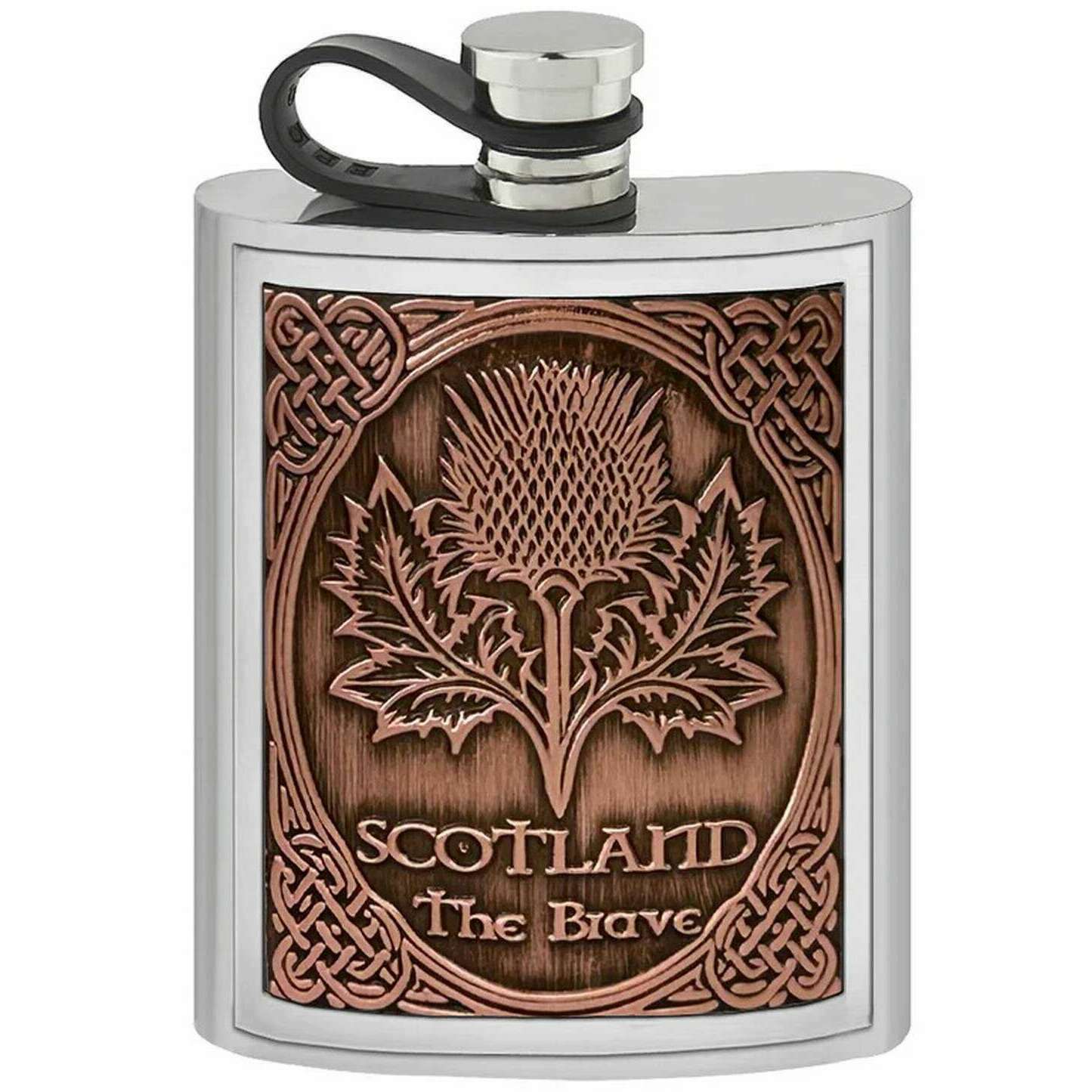 English Pewter Company 6oz Embossed Thistle Pewter Flask - Silver/Copper Orange