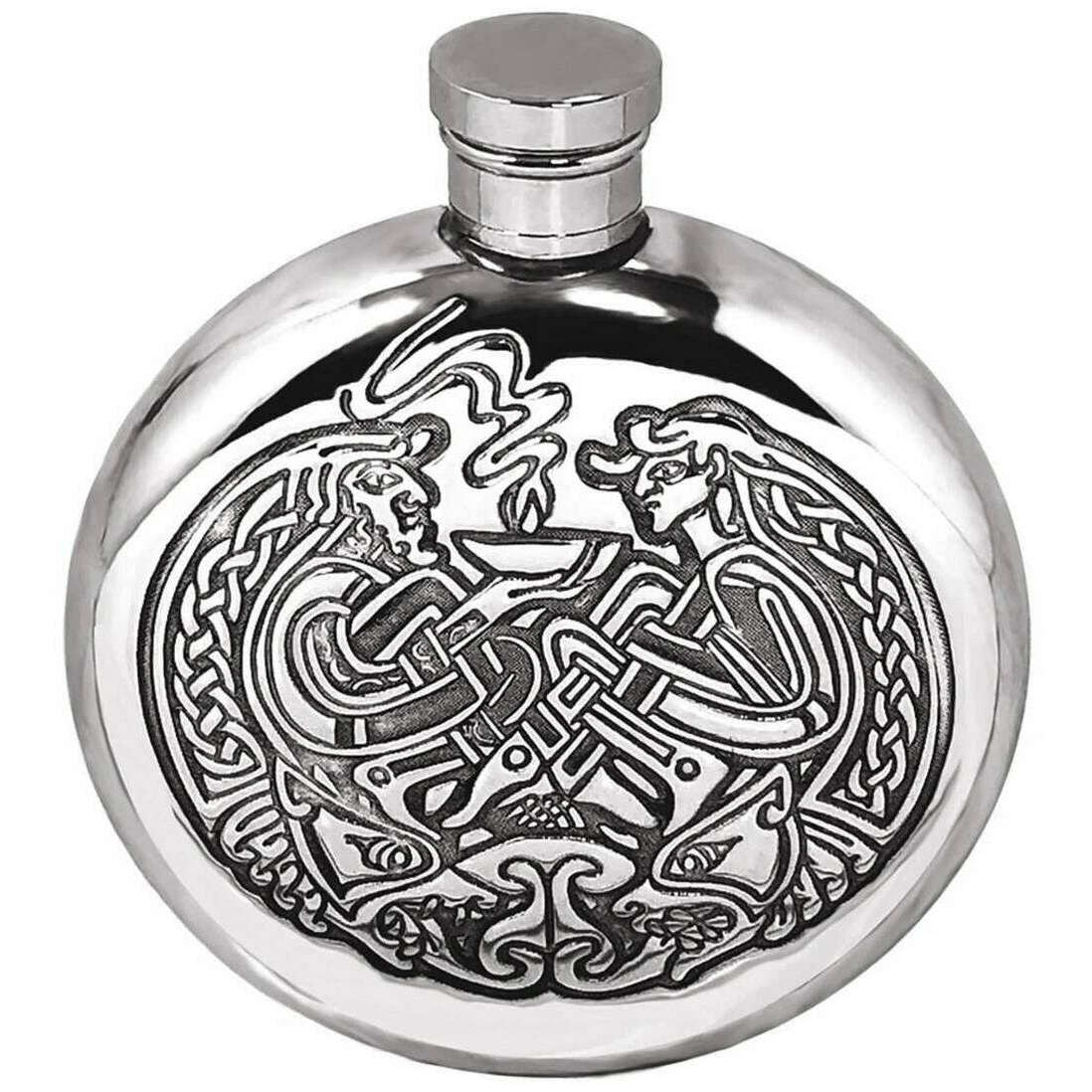 English Pewter Company 6oz Round Celtic Flask - Silver
