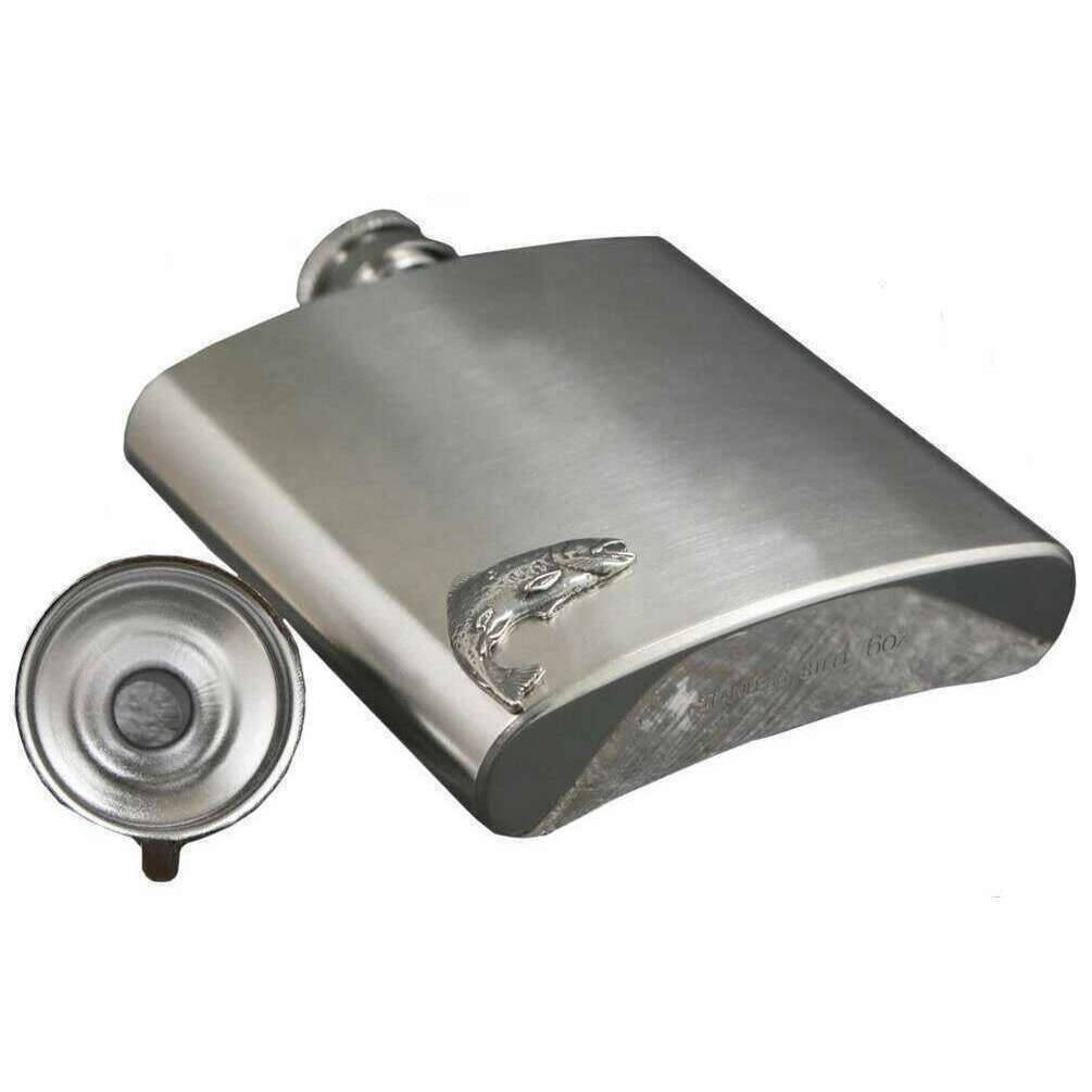 English Pewter Company 6oz Stainless Steel Trout Hip Flask - Silver