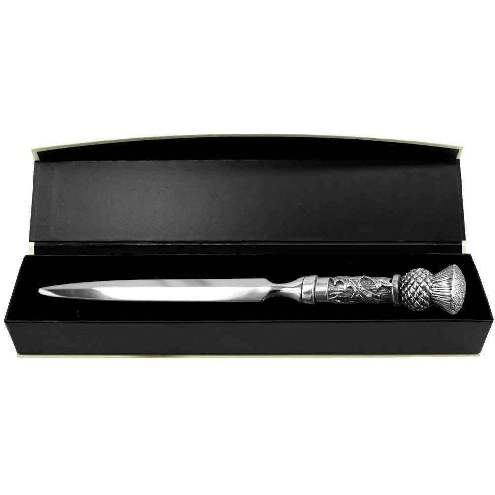 Manufactured from pewter is this silver unisex thistle letter opener by the designer English Pewter Company. It measures 21.5cm(height). All the desk accessories come complete in a english pewter company gift box. The English Pewter Company Thistle Letter Opener - Silver is an ideal accessory to have to hand when it comes to opening your mail, giving you a clean cut rather than the un-even rips you get when using your fingers. It is a much easier method making the task much more efficient.