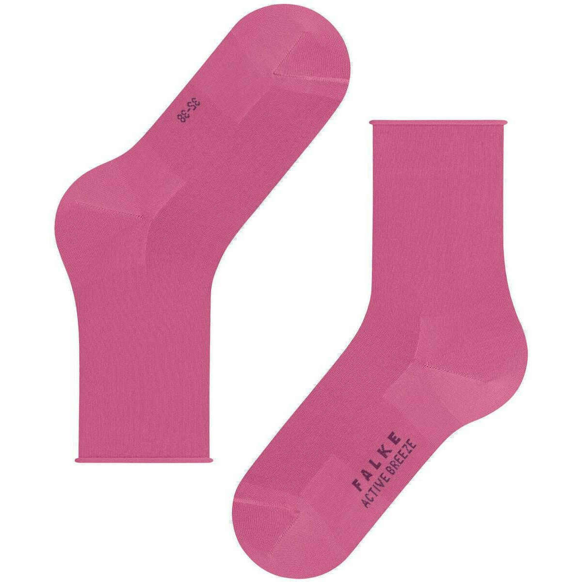 Perfect for women are these Falke candy pink active breeze socks, they are also made from 70% lyocell, 28% polyamide and 2% elastane. Also the candy pink socks are designed in a plain pattern, It is recommended to machine wash at 40 degrees and do not tumble dry. to keep these socks in good condition. All the socks come complete with falke sock tags. The Falke Active Breeze Socks - Candy Pink give an exceptionally smooth feel against the skin. The gentle rolled cuffs provide a comfortable fit, while you get that classy, feminine look. The high level of moisture transport and the breathable material, ensure your feet keep dry and perfect temperature all day long. These socks are free from chemical additives and are excellently crafted from TENCEL™ Lyocell which is a biodegradable fibre obtained from sustainably grown, FSC-certified eucalyptus wood; making them environmentally friendly. They also provide optimal durability thanks to reinforced stress zones. A complement to any outfit, these socks are Falke perfect fit!