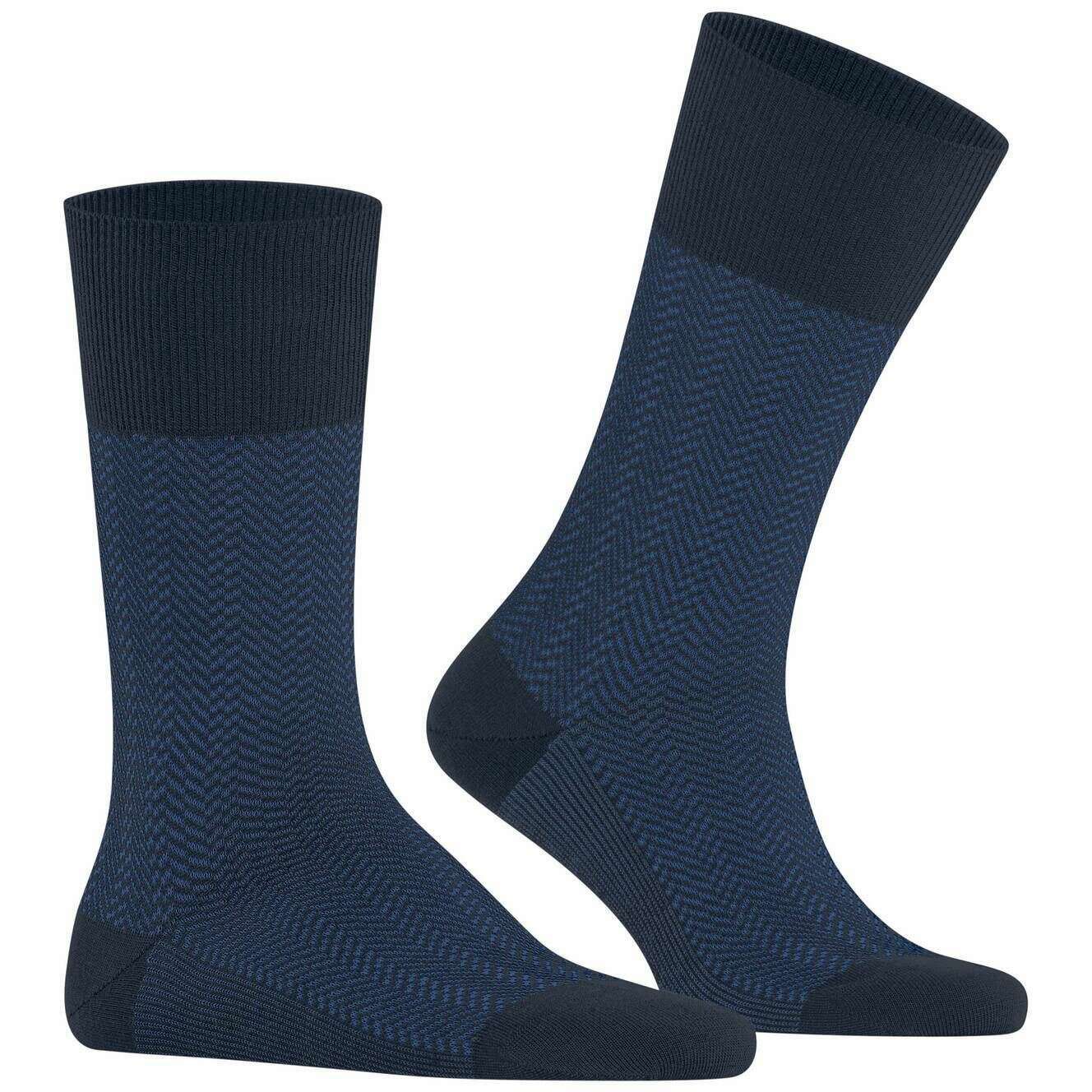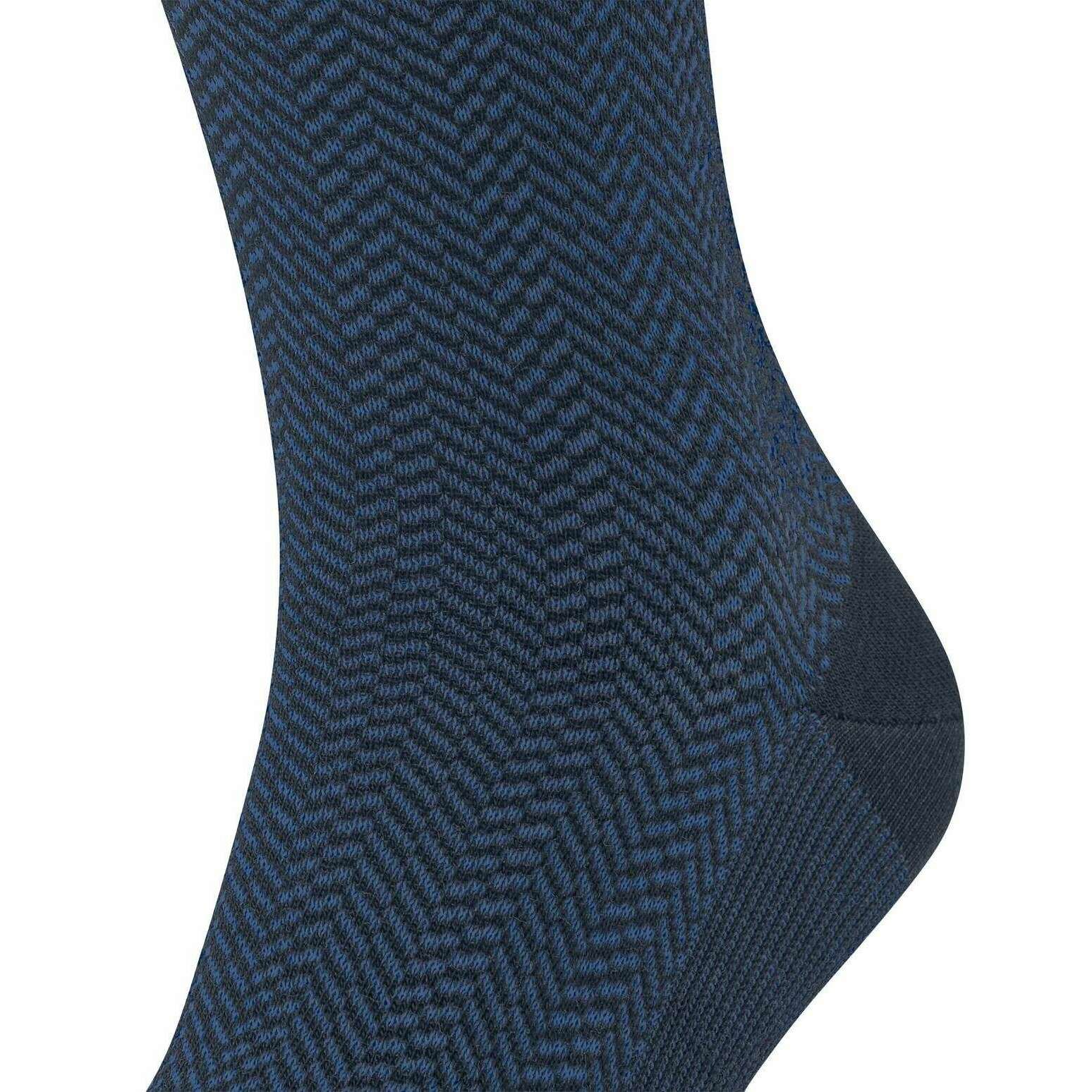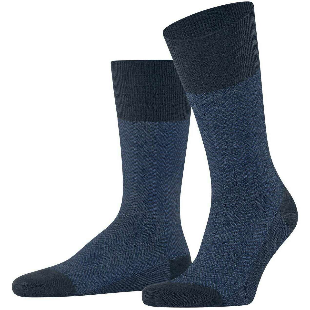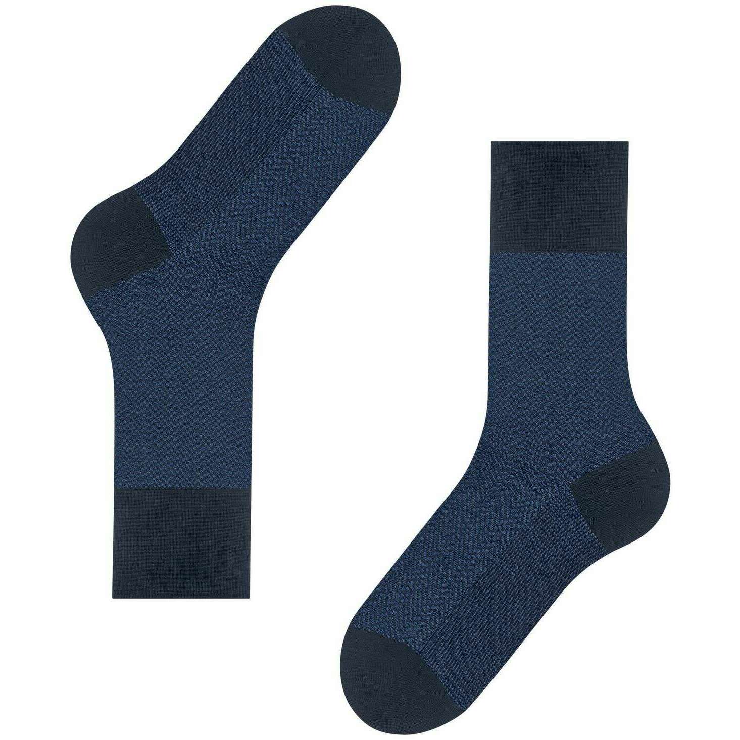 Manufactured from 62% virgin wool, 24% polyamide, 13% cotton and 1% elastane are these space blue men's airport herringstripe socks by the designer Falke. Also the space blue socks are designed in a herringbone pattern, It is recommended to wash at 30 degrees to keep these socks in good condition. All the socks come complete with falke tags. The Falke Airport Herringstripe Socks - Space Blue are woven with the correct combination of light, climate-regulating merino wool on the outside and pleasant soft cotton on the inside. For work or leisure, these socks have extended cuffs for a wrinkle fit on the leg. The reinterpreted, two-tone herringbone pattern adds a modern and stylish touch and lends a special flair to any outfit. Stay comfortable all day with the Falke Perfect fit and enjoy wearing these socks over and over with optimal durability thanks to reinforced stress zones.