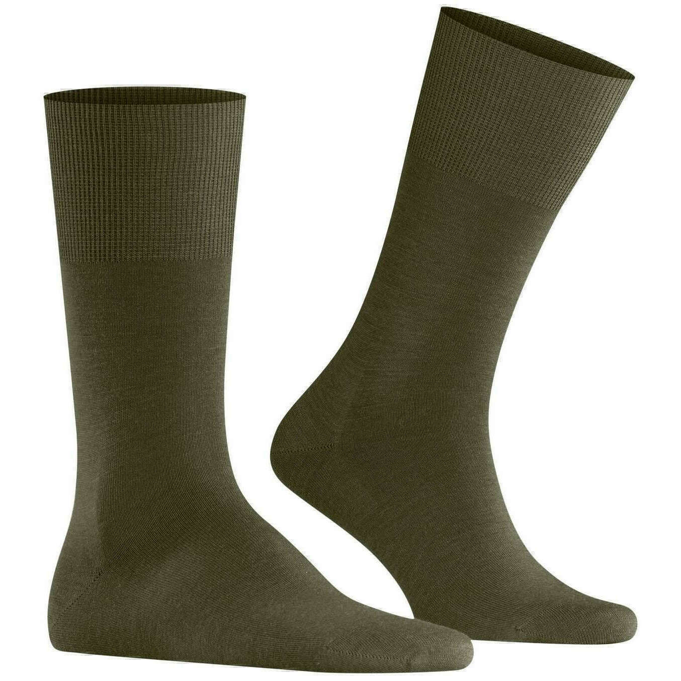 These well made men's airport socks from Falke come in a grass green colour and are manufactured from 60% virgin wool, 23% cotton, 15% polyamide and 2% elastane. Also the grass green socks are designed in a plain pattern, It is recommended to machine wash at 30 degrees celsius to keep these socks in good condition. All the socks come complete with falke sock tags. The Falke Airport Socks - Grass Green are woven with the correct combination of light, climate-regulating merino wool on the outside and pleasant soft cotton on the inside. For work or leisure, these socks have extended cuffs for a wrinkle fit on the leg. With flat whipped seam, your toes endure no pinch or pressure. Stay comfortable all day with the Falke Perfect fit and enjoy wearing these socks over and over with optimal durability thanks to reinforced stress zones.