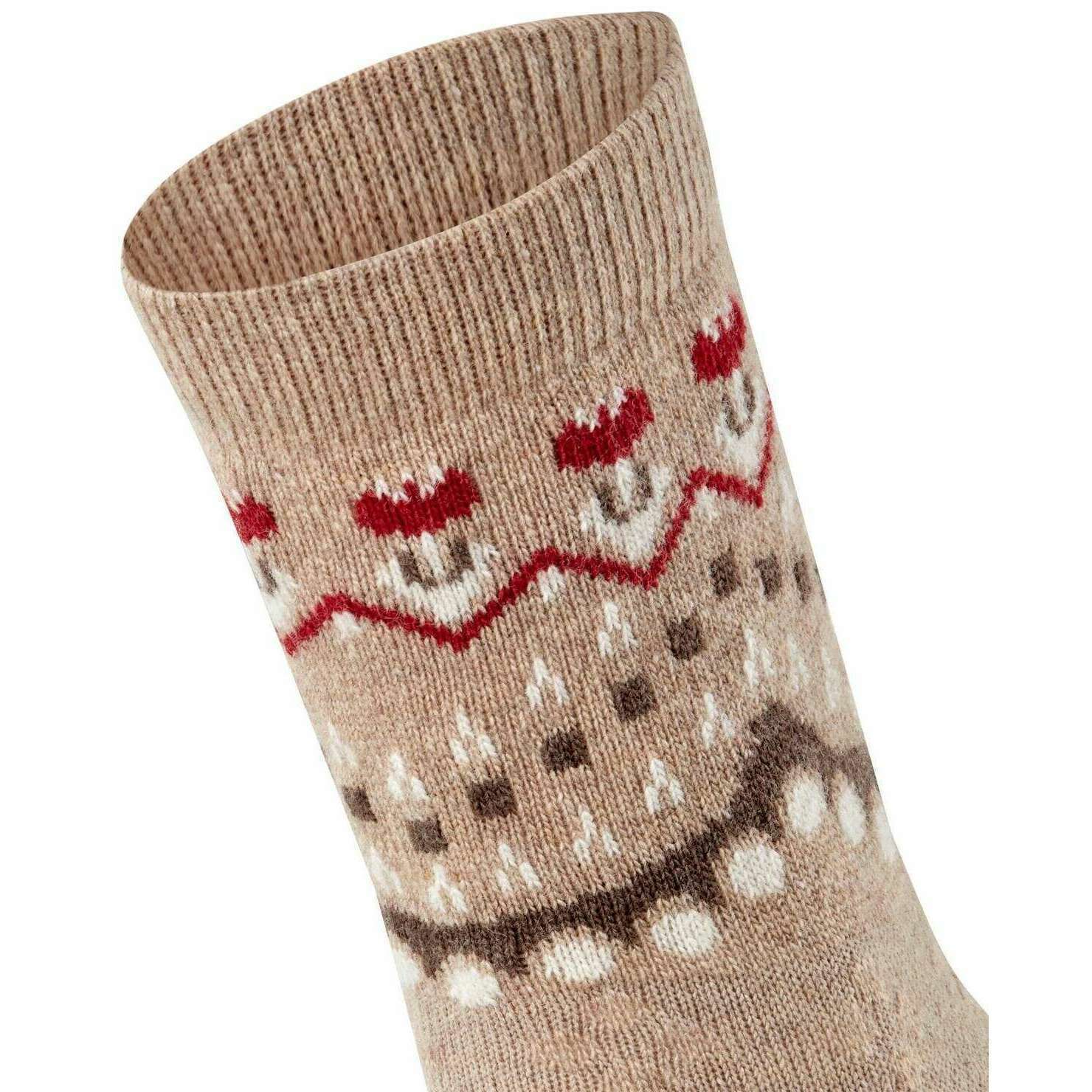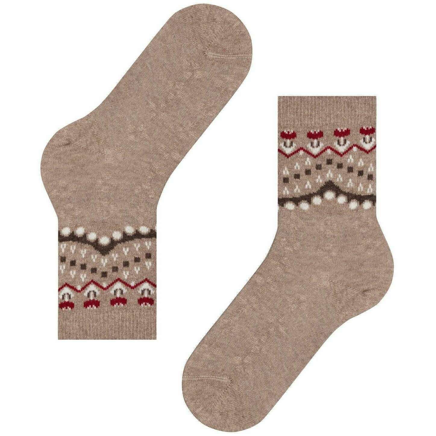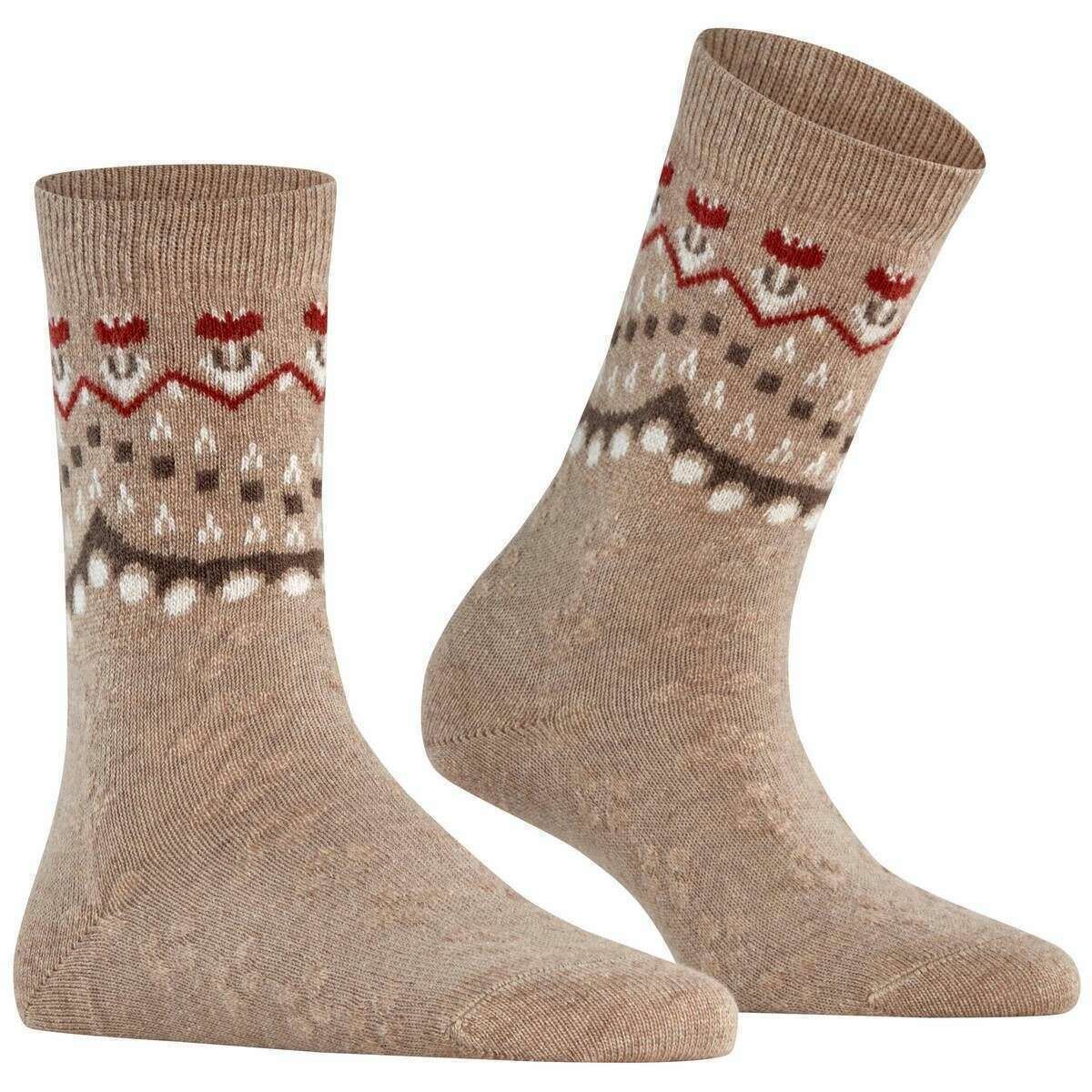 These well made women's cosy wool special edition socks from Falke come in a beige mel colour and are manufactured from 31% wool, 26% rayon, 24% polyamide (6% recycled), 18% cashmere and 1% elastane. Also the beige mel socks are designed in a unique pattern, It is recommended to machine wash at 30 degrees to keep these socks in good condition. All the socks come complete with falke sock tags. The Falke Cosy Wool Special Edition Socks - Beige Mel are so comfortable, light, undeniably soft and pleasantly warm. This pair is part of the 130 year anniversary collection meaning these are a premium pair that features a winter folk motif with delicate, feminine accents, such as floral elements and subtle embellishments. Thanks to reinforced stress zones and Falke-We-Care-Wool, these sustainable socks offer optimal durability you can count on whilst being environmentally friendly. Perfect for casual outfits with solid boots or ankle boots, these socks will give you a snug, stay in place Falke Perfect Fit, while the warming cashmere pampers your feet all day long.