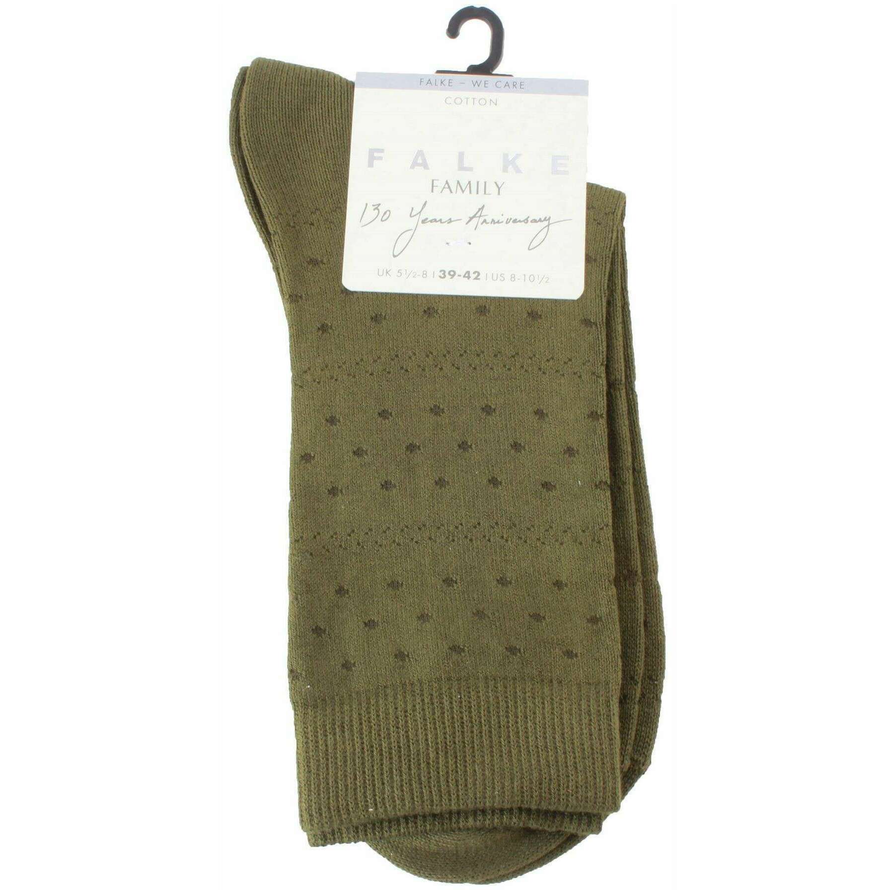 Brought to you by the brand Falke, these artichoke green women's family special edition socks are made from 91% cotton, 8% polyamide and 1% elastane. Also the artichoke green socks are designed in a unique pattern, It is recommended to machine wash at 30 degrees to keep these socks in good condition. All the socks come complete with falke sock tags. The Falke Family Special Edition Socks - Artichoke Green are made with a very high cotton content, making them skin friendly and perfect for sensitive feet. This pair is part of the 130 year anniversary collection meaning these are a premium pair that features a delicate feminine pattern. These socks as well as being flattering for your feet are also great for the earth as they are part of the 'FALKE WE CARE' cotton range. This means that they are sustainable, resource-saving, socially responsible, traceable and environmentally-friendly. As well as being great for the planet they will provide you with a comfort you can't refuse thanks to the reinforced stress zones.