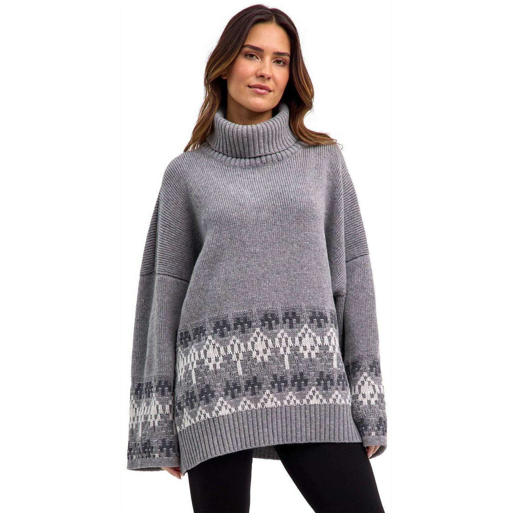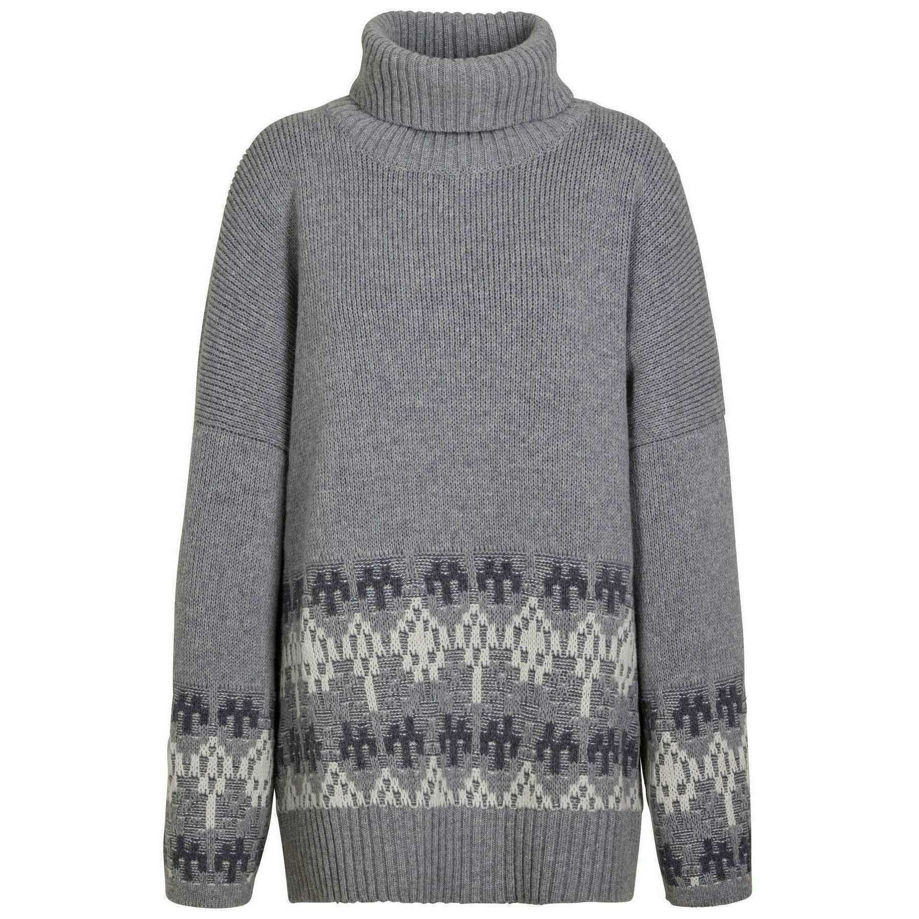 This women's jacquard roll neck sweater has been made from 80% recycled virgin wool and 20% polyamide, featured in a grey colour and is from the brand Falke. Also the grey mel jumper is designed in a unique pattern, It is recommended to machine wash at 30 degrees to keep this jumper in good condition. All the jumpers come complete with falke packaging. The Falke Jacquard Roll Neck Sweater - Grey Mel in the style of a poncho gives an oversized look with its loose and relaxed fit which also has a traditional winter look with the wide roll neck and the Norwegian-style jacquard pattern. Giving this sweater its unbeatable warmth is the exceptionally soft and warm lambswool that will certainly protect you from the cold and keep you comfortable.