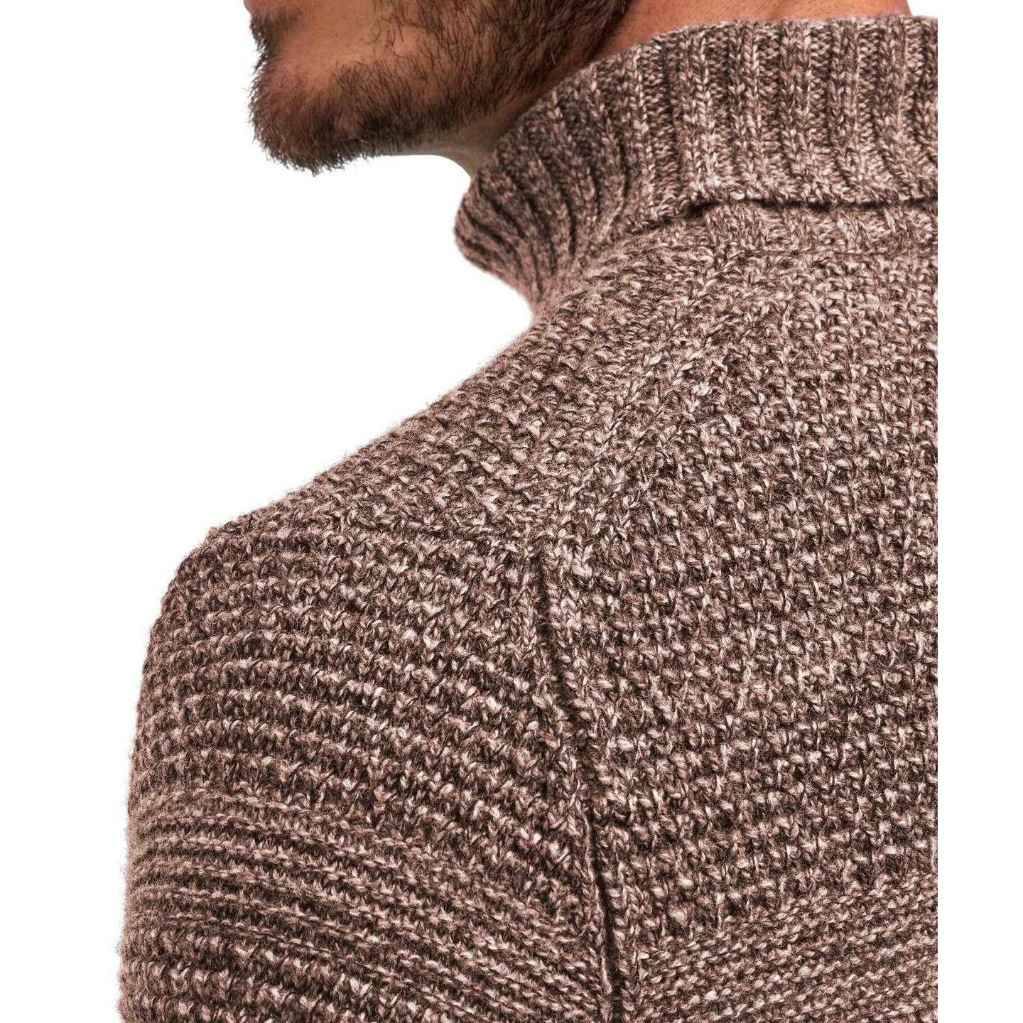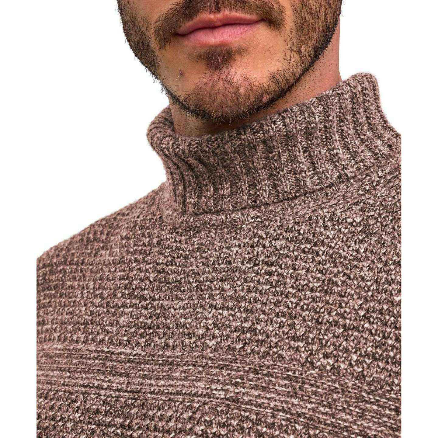 • Chunky Knit , Block Striped Chest , Regular Fit , French Shoulders , Ribbed Turtleneck , Ribbed Cuffs , High-Quality 'Fully Fashioned' Processing