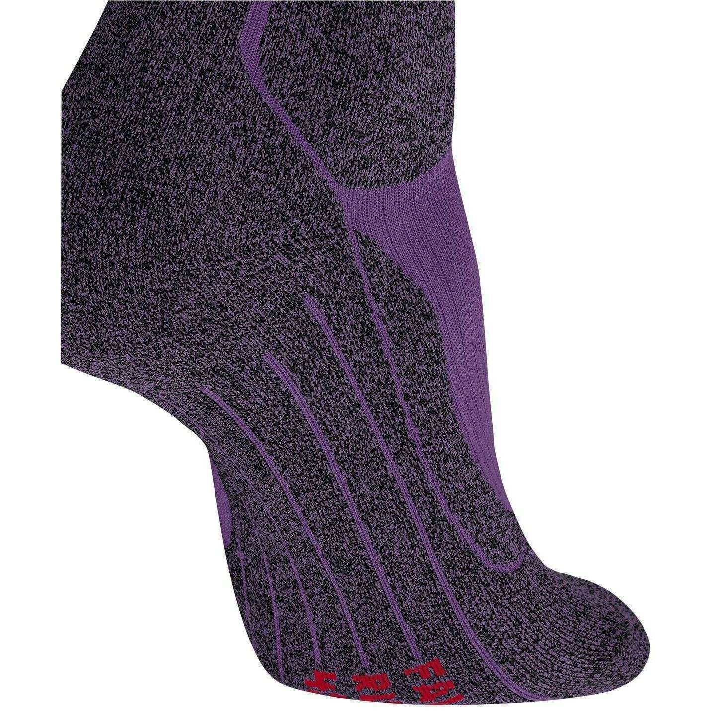 These well made women's ru trail running socks from Falke come in a plum lilac colour and are manufactured from 97% polyamide and 3% elastane. Also the plum lilac socks are designed in a block pattern, It is recommended to wash at 40 degrees to keep these socks in good condition. All the socks come complete with falke sock tags. The Falke RU Trail Running Socks - Plum Lilac provide stabilising compression zones to minimise the risk of twisting the ankle. With light cushioning for direct power transmission and speed, these trail running socks have quick drying wicking 3-layer construction to keep your feet dry and blister free. The perfect choice for off-road and uneven terrain runs, these socks are complete with optimal fit with toe and sole area adapted to each foot. Specifically adapted to narrower female feet.
