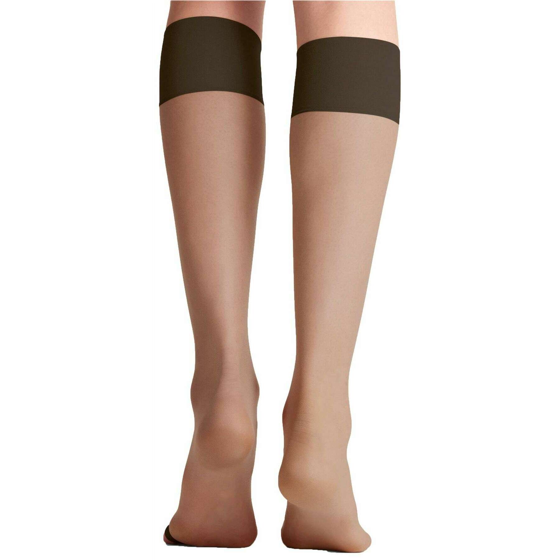These women's shelina 12 denier toeless knee high socks have been made from 67% polyamide and 33% elastane, featured in a brown colour and are from the brand Falke. Also the espresso brown tights are designed in a plain pattern, It is recommended to wash at 30 degrees to keep these tights in good condition. All the tights come complete with falke tags. The Falke Shelina 12 Denier Toeless Knee High Socks - Espresso Brown are designed to fit like makeup on your skin. With 12 denier appearance and a unique naturalness these toeless knee-high socks are ideal with sandals and open shoes and are suitable for every skin type. The soft sensitive top band provides maximum comfort and a perfect FALKE fit. These knee-high socks strike the perfect balance between refined hosiery and modern practicality, making them a go-to choice for season-spanning wear and dressy occasions alike!