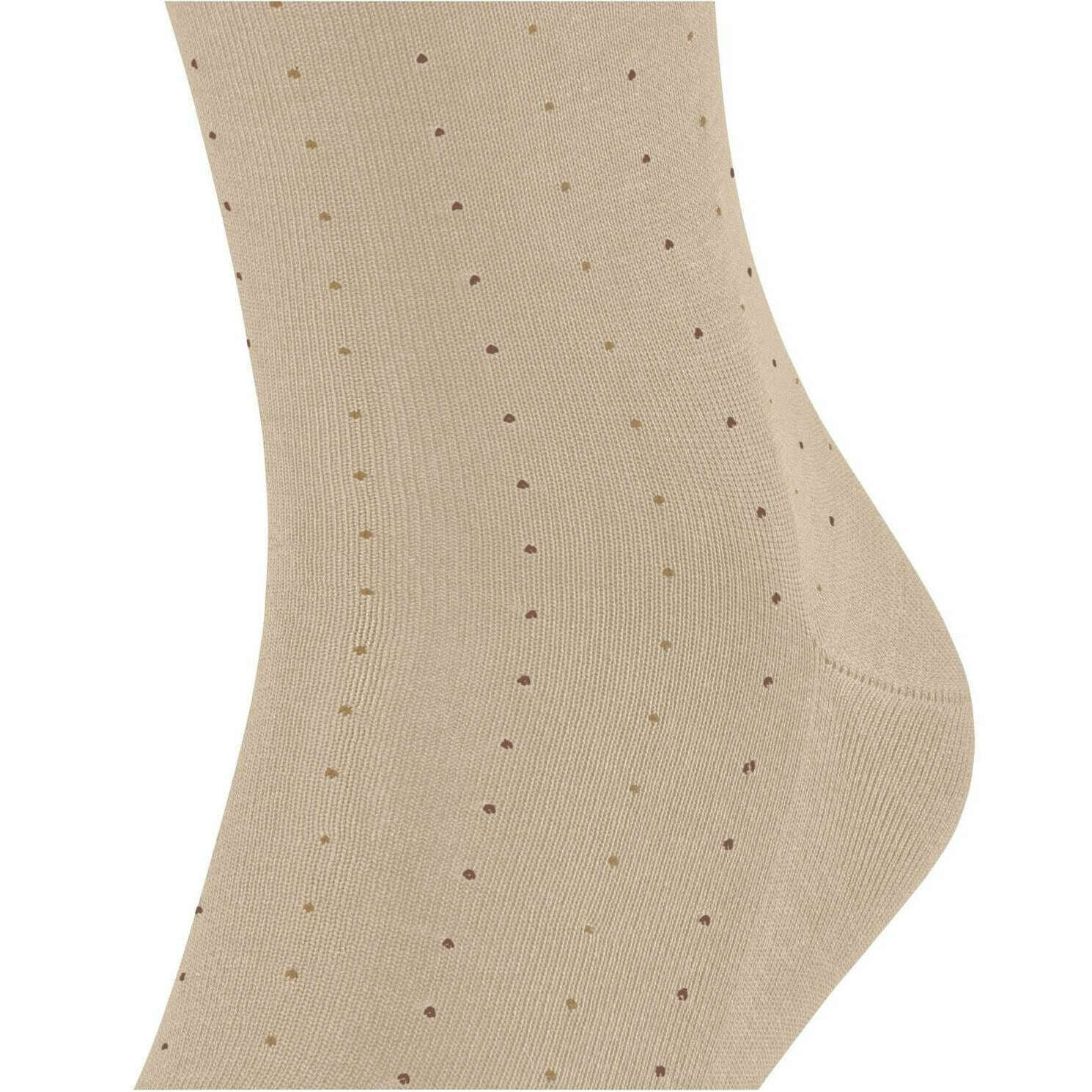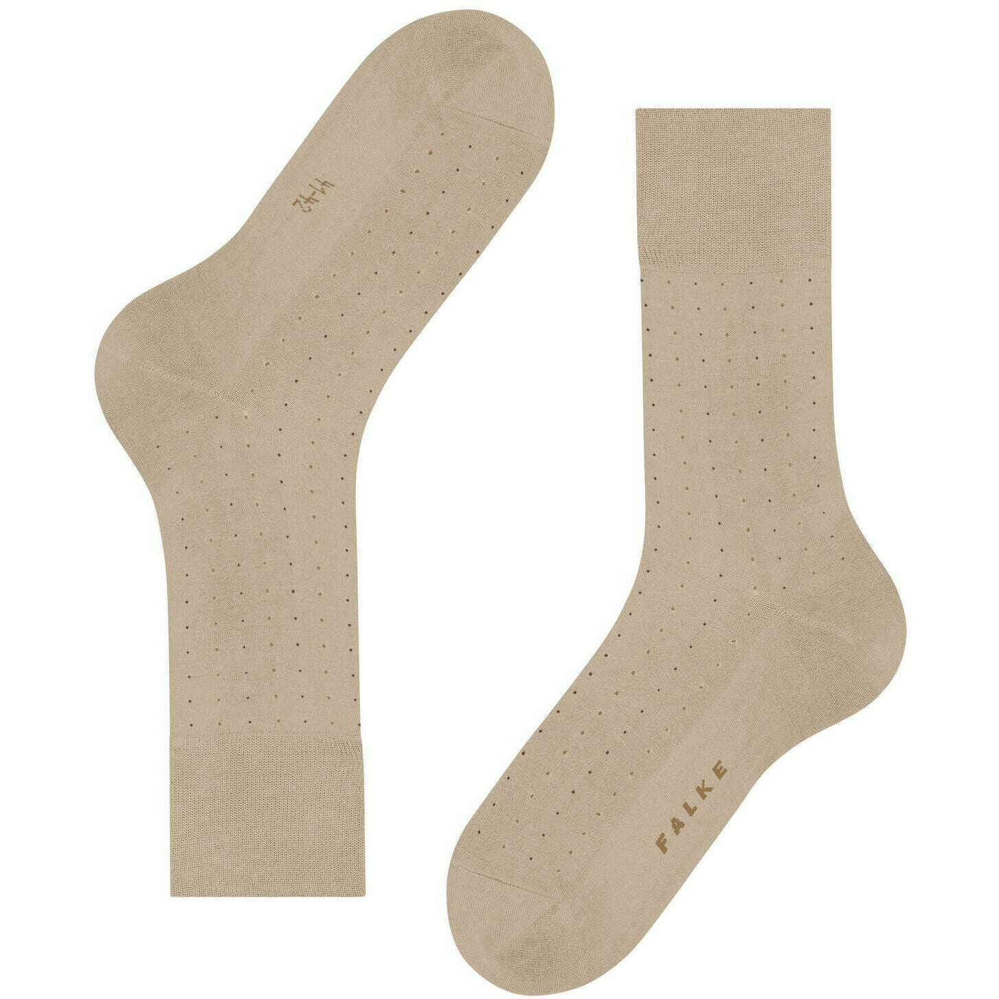 These men's tiago dotted line socks by the brand Falke are made from 93% cotton, 5% polyamide and 2% elastane and are showcased in beige. Also the silk beige socks are designed in a pin dot pattern, It is recommended to wash at 30 degrees to keep these socks in good condition. All the socks come complete with falke tags. The Falke Tiago Dotted Line Socks - Silk Beige are ideal for active men! Business or leisure these socks offer a two-tone dot design for a stylish look. Lightweight thanks to the high-quality Fil d' cosse cotton, you feel comfortable all day. The extended cuff ensures a wrinkle-free fit on the leg, while reinforced stress zones guarantee high durability. The unique colour brilliance and iconic appearance allow you to combine these socks with any outfit. With the Falke Perfect Fit, these socks make an excellent gift idea.