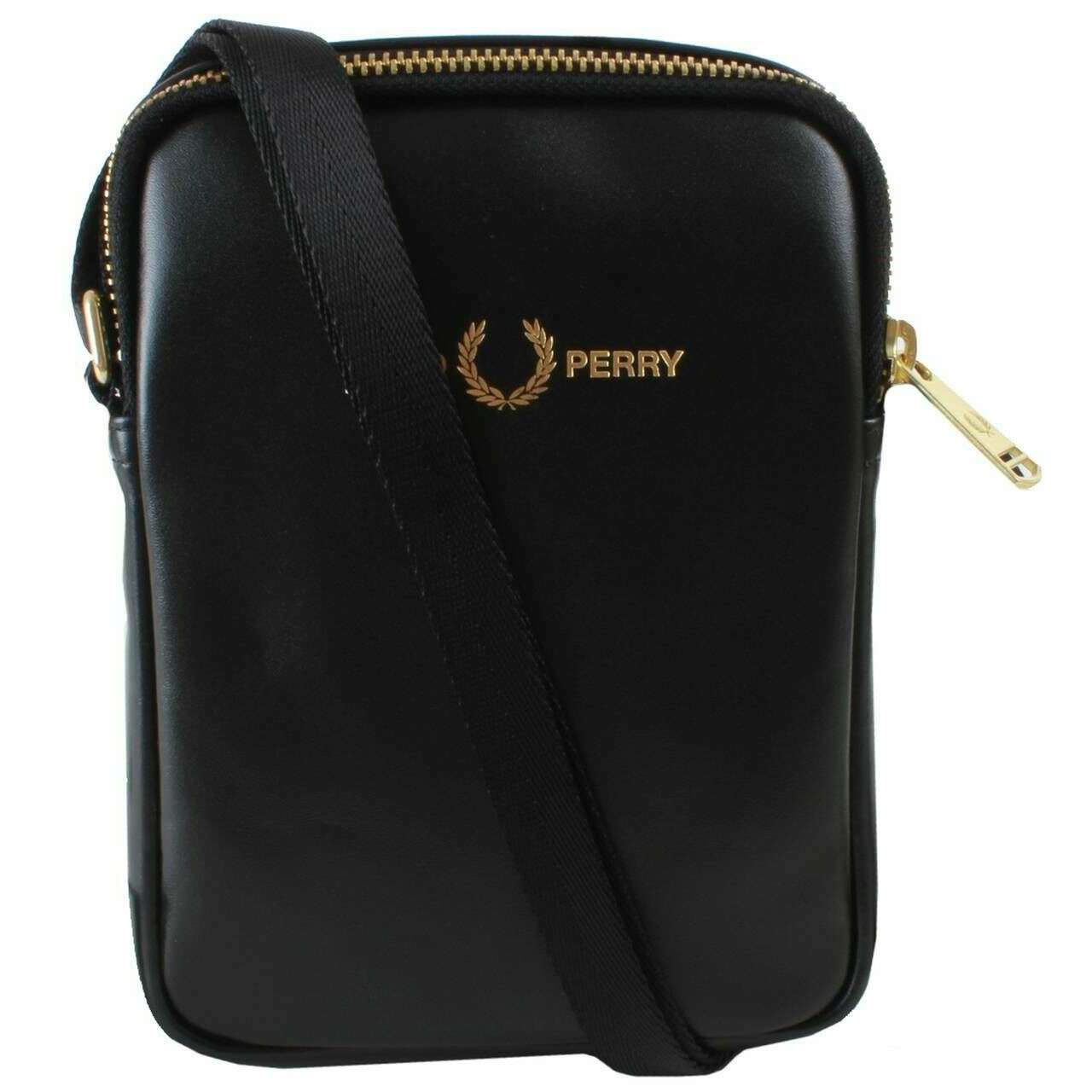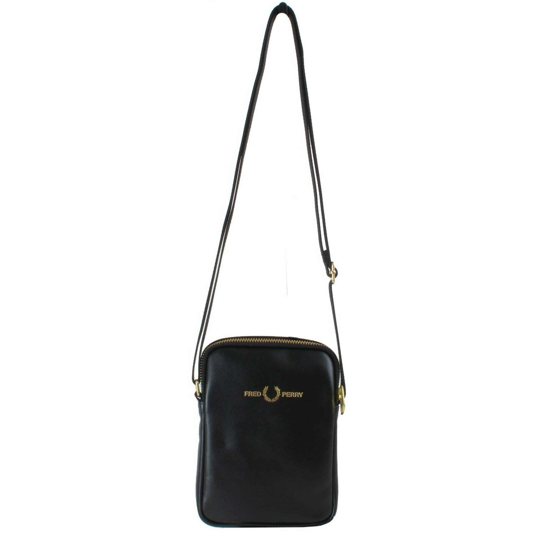 Fred Perry Smooth Leather Small Side Bag - Black
