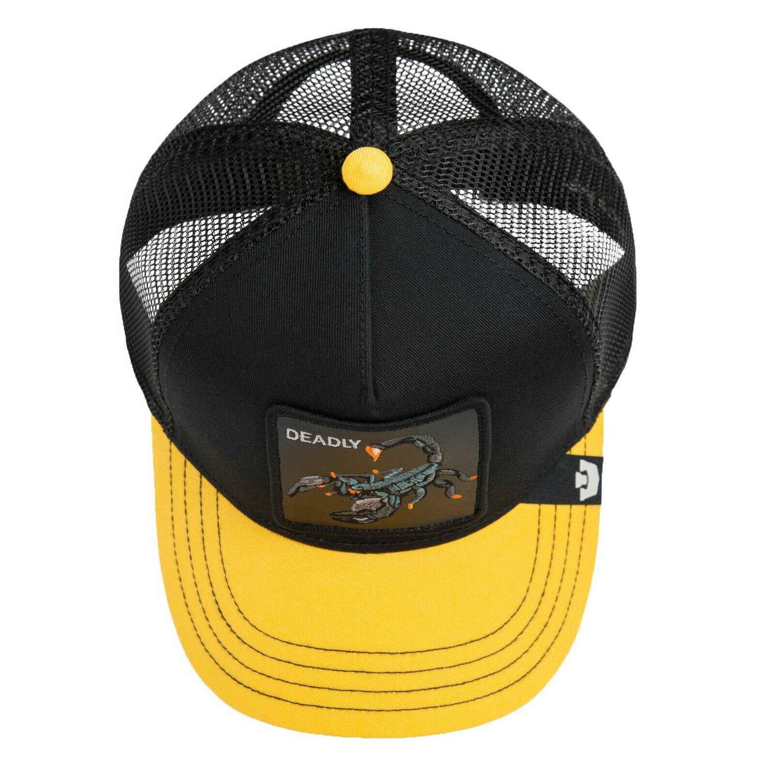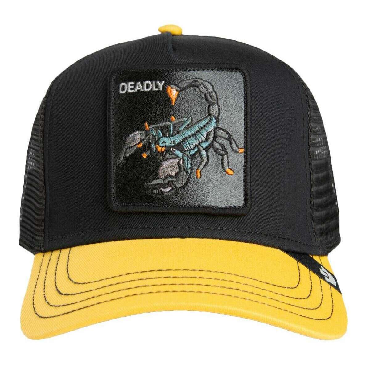 This well made unisex deadly trucker hat from Goorin Bros comes in a void black/beam yellow colour and is manufactured from 57% polyester and 43% cotton. Also the void black/beam yellow hat is designed in a 2-tone pattern, All the hats come complete with goorin bros tags. The Goorin Bros Deadly Trucker Hat - Void Black/Beam Yellow is an eye-catching trucker hat that will stand out in any crowd. Made to be worn by everyone and fits most with an adjustable back. A guaranteed comfortable experience with breathable mesh backing and high-quality material. This hat features a cool scorpion on the front, perfect if you want to make a statement.