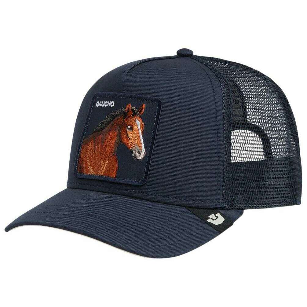 This unisex gaucho trucker hat has been made from 57% polyester and 43% cotton, featured in a navy colour and is from the brand Goorin Bros. All the hats come complete with goorin bros tags. The Goorin Bros Gaucho Trucker Hat - Edge Navy brings the freedom of the wild straight into everyday life. With its striking horse patch, this Goorin Bros design captures primal strength and the essence of open landscapes, instantly transforming into a bold, eye?catching statement piece. The intricately embroidered horse motif on the high?quality patch adds vibrant authenticity, making the cap feel alive with movement and character. The deep blue front panel provides a powerful contrast, while the breathable mesh back ensures lasting comfort perfect for city streets, nature escapes, and everything in between. Combining premium craftsmanship, an iconic animal emblem, and a modern silhouette, this cap is ideal for anyone who wants to express style, personality, and a hint of adventure. A must?have for those who carry the spirit of the wild with them.