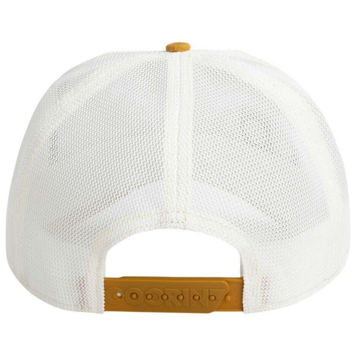 This unisex suede squirrel trucker hat has been made from 78% polyester and 22% cotton, featured in a white colour and is from the brand Goorin Bros. All the hats come complete with goorin bros tags. The Goorin Bros Suede Squirrel Trucker Hat - Dust White/Amber brings playful energy and modern streetwear flair to everyday life. This Goorin Bros design pairs a bright white front panel with a warm amber suede visor, creating a fresh and eye?catching contrast that immediately stands out. The lovingly embroidered squirrel patch gives the cap its lively personality, adding a touch of humour and positivity to any outfit. The premium suede visor enhances the cap with an elegant, tactile finish, while the breathable mesh back ensures excellent ventilation. With its adjustable snapback closure, the fit is always personalised and comfortable. Perfect for anyone who loves combining streetwear coolness with high?quality materials and a fun, expressive twist, this cap is a light-hearted statement piece for every day.