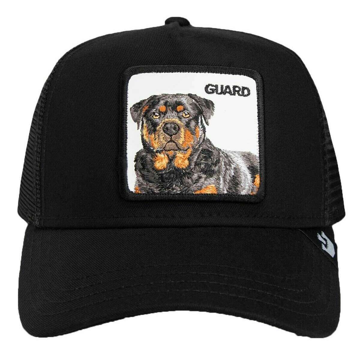 This unisex the guard dog trucker hat has been made from 57% polyester and 43% cotton, featured in a blue colour and is from the brand Goorin Bros. Also the ebony black hat is designed in a plain pattern, All the hats come complete with goorin bros tags. The Goorin Bros The Guard Dog Trucker Hat - Ebony Black is an eye-catching trucker hat that will stand out in any crowd. Made to be worn by everyone and fits most with an adjustable back. A guaranteed comfortable experience with breathable mesh backing and high-quality material. A classic black hat with a rottweiler on the front, perfect for those that love to stand out.