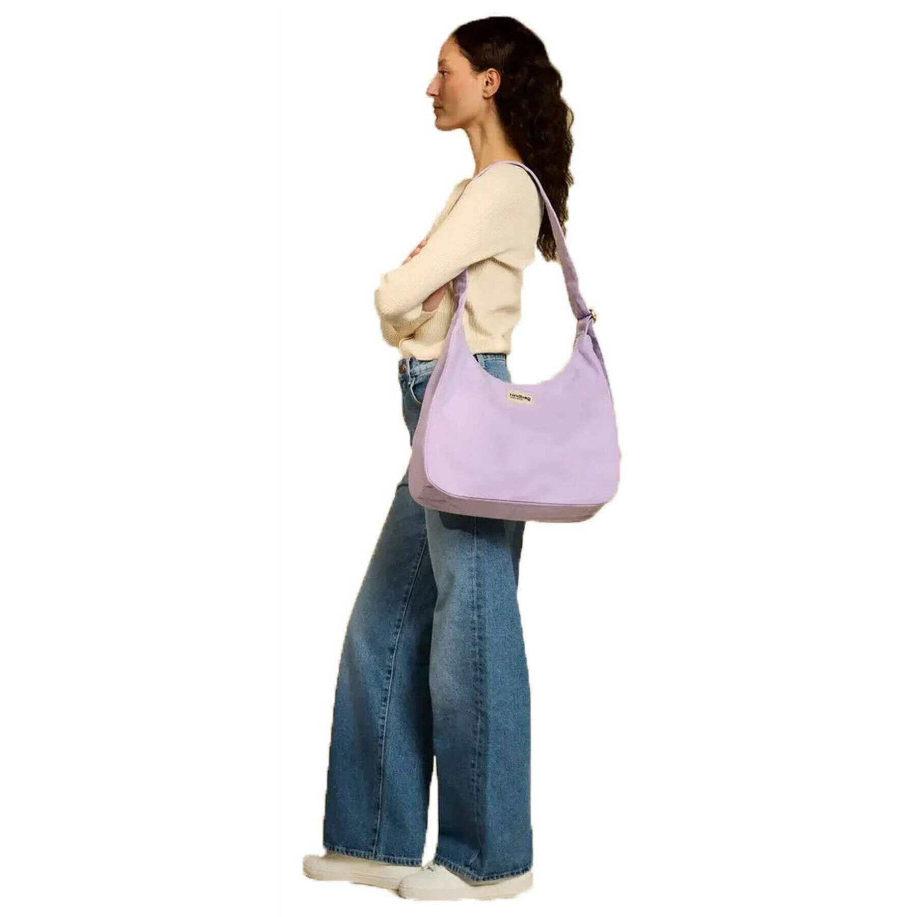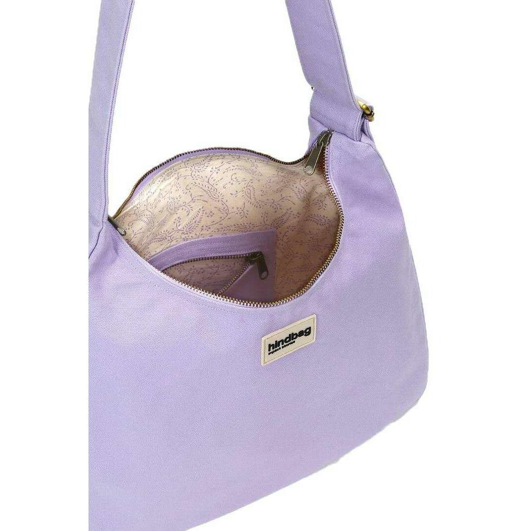 Manufactured from 100% organic cotton (500g/m2) is this lilac unisex claire hobo bag by the designer Hindbag. It measures 29cm(height) x 36cm(width) x 13cm(depth). All the bags come complete with hindbag packaging. The Hindbag Claire Hobo Bag - Lilac is the perfect large shoulder bag to accompany your busy days. Featuring a double zip closure that makes it easy to open and close, this bag holds essentials like a wallet, phone, keys, maybe a small tablet, makeup pouch, or sunglasses with ease. The inner zip pocket keeps your essentials protected and within reach. The adjustable strap adapts to your needs and can be worn over the shoulder or crossbody for optimal comfort. Perfect for everyday wear this bag is comfort and style rolled into one.