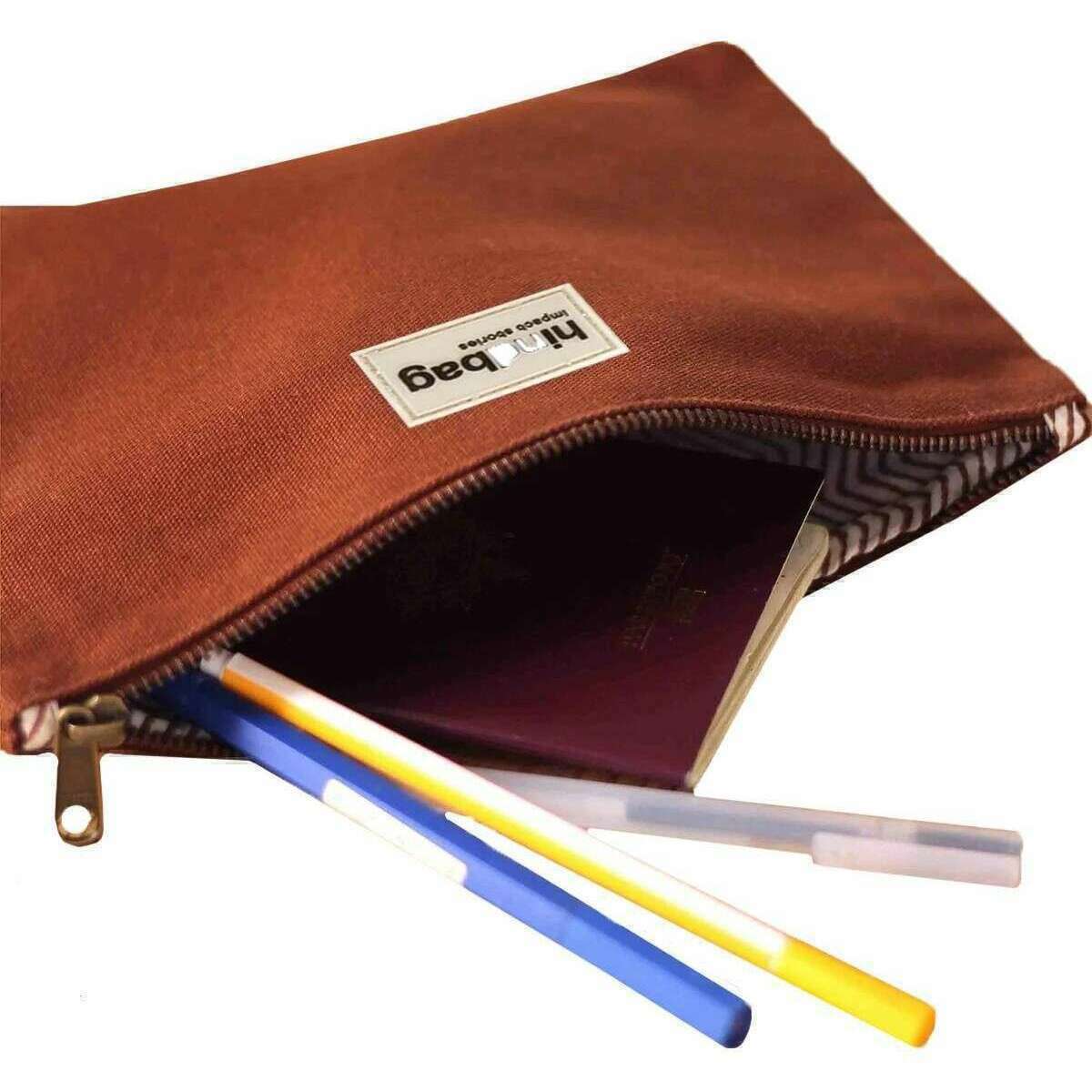 This well made unisex ema medium zipped pouch from Hindbag comes in a chocolate brown colour and is manufactured from 100% organic cotton. It measures 18cm(height) x 25cm(width). All the bags come complete with hindbag packaging. The Hindbag Ema Medium Zipped Pouch - Chocolate Brown is a modern, minimalistic and functional accessory designed for storing all your essential items, such as cards, cash and small personal belongings. This eco-friendly zipped pouch features a super strong YKK zipper and thick cotton to withstand all the hazards of everyday life. The handmade patterned lining adds a touch of elegance to this piece.