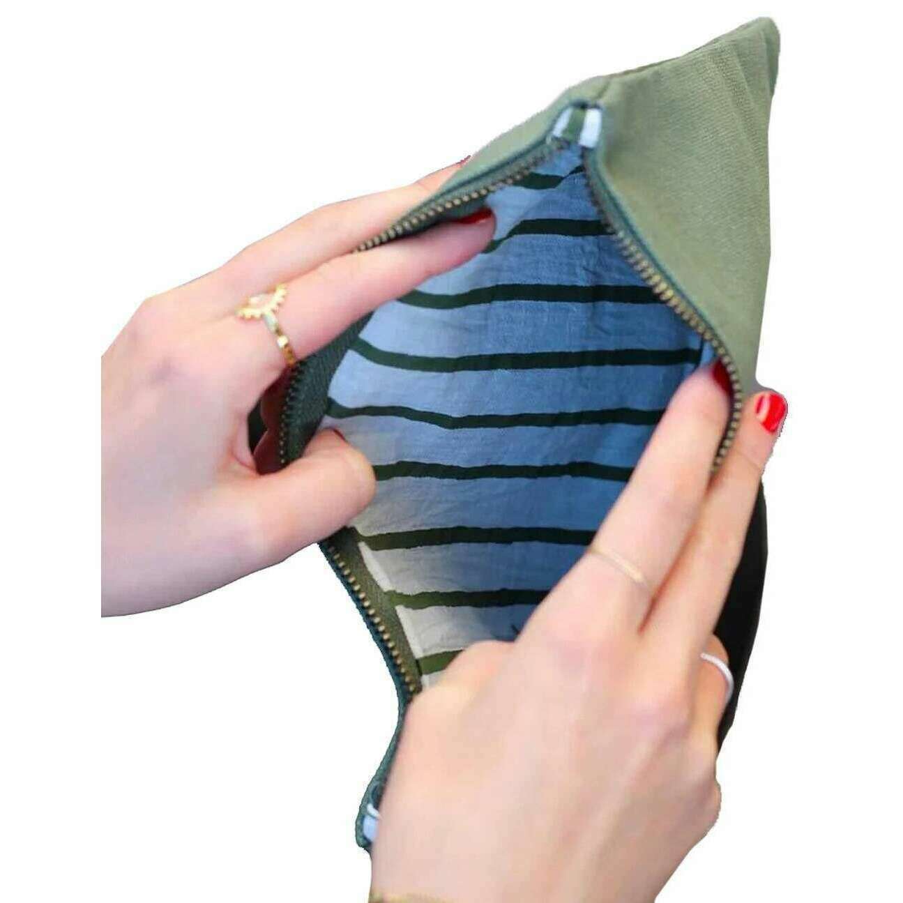 Manufactured from 100% organic cotton is this olive green unisex ema medium zipped pouch by the designer Hindbag. It measures 18cm(height) x 25cm(width). All the bags come complete with hindbag packaging. The Hindbag Ema Medium Zipped Pouch - Olive Green is a modern, minimalistic and functional accessory designed for storing all your essential items, such as cards, cash and small personal belongings. This eco-friendly zipped pouch features a super strong YKK zipper and thick cotton to withstand all the hazards of everyday life. The handmade patterned lining adds a touch of elegance to this piece.