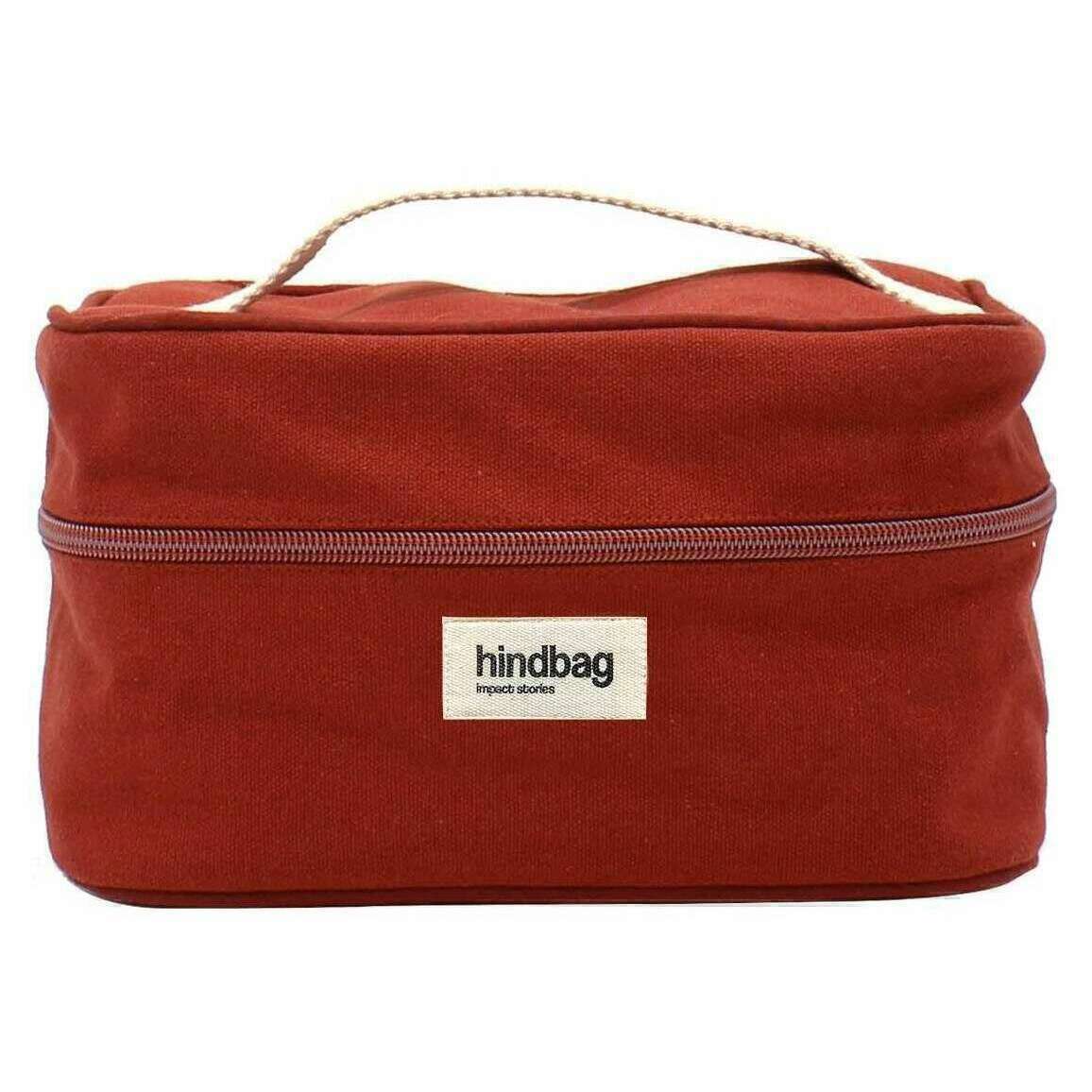 This well made unisex gaspard vanity bag from Hindbag comes in a terracotta red colour and is manufactured from 100% organic cotton. It measures 13.5cm(height) x 16cm(width) x 25cm(depth). All the bags come complete with hindbag packaging. The Hindbag Gaspard Vanity Bag - Terracotta Red offers travellers and everyday users alike a convenient and stylish way to keep their toiletries organized and accessible. The interior net is perfect for neatly arranging toiletries, cosmetics, and other personal items. Available in a range of colours, this fashionable accessory represents a harmonious fusion of functionality and aesthetics, catering to those who value both style and practicality in their journey.