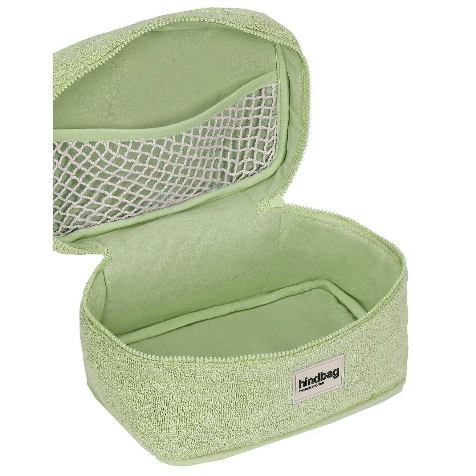 This unisex gaspard vanity bag has been made from 100% organic cotton, featured in a green colour and is from the brand Hindbag. It measures 13.5cm(height) x 16cm(width) x 25cm(depth). All the bags come complete with hindbag packaging. The Hindbag Gaspard Vanity Bag - Terry Green offers travellers and everyday users alike a convenient and stylish way to keep their toiletries organized and accessible. The interior net is perfect for neatly arranging toiletries, cosmetics, and other personal items. Available in a range of colours, this fashionable accessory represents a harmonious fusion of functionality and aesthetics, catering to those who value both style and practicality in their journey.