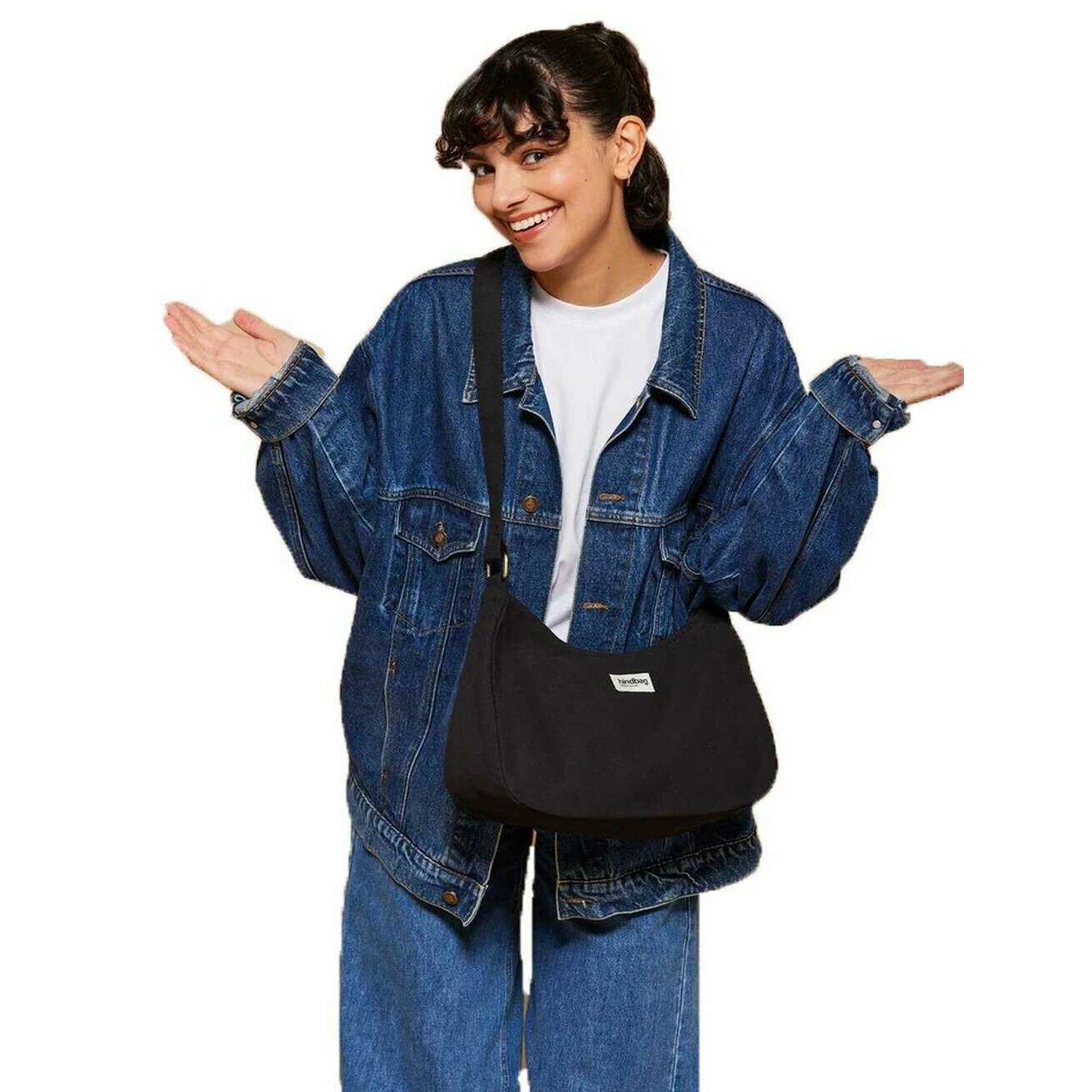 Perfect for men or women is this Hindbag black rosa large shoulder bag, it is also made from 100% organic cotton (500g/m2). It measures 20cm(height) x 34cm(width) x 10cm(depth). All the bags come complete with hindbag packaging. The Hindbag Rosa Large Shoulder Bag - Black is an elegant yet playful accessory designed to carry you from the office to brunch with ease. With its adjustable handle, it can be worn over the shoulder, on the shoulder or on the arm. With an inner lining that adds a touch of elegance, this bag features an outside pocket with zipper to have all your essentials close at hand. Ideal for everyday use, this bag is designed for comfort and usability as much as for style.