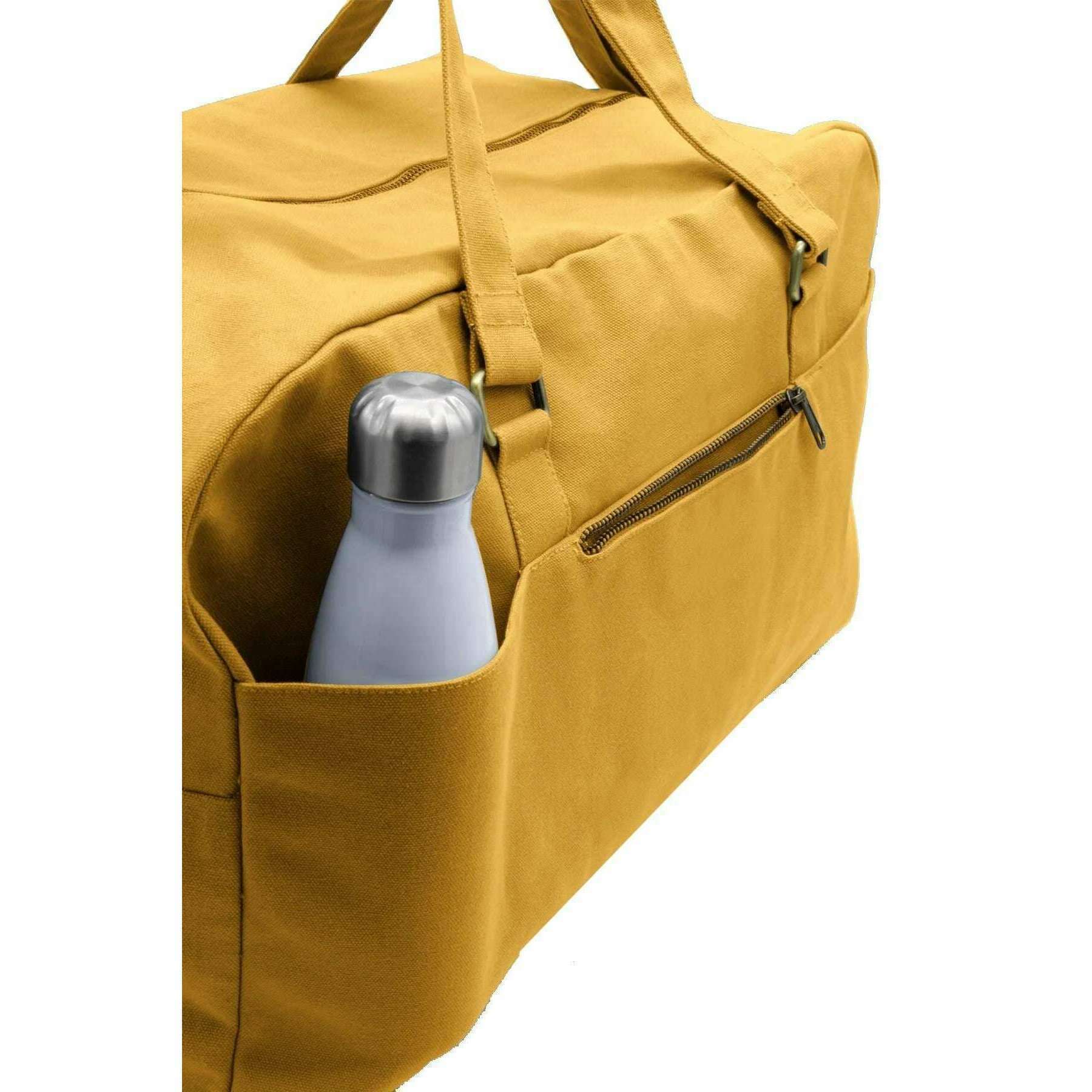 Brought to you by the brand Hindbag, this saffron yellow unisex yves large travel bag is made from 100% organic cotton. It measures 33cm(height) x 54cm(width) x 24cm(depth). All the bags come complete with hindbag packaging. The Hindbag Yves Large Travel Bag - Saffron Yellow is a spacious and eco-friendly option for travellers. Crafted from thick, GOTS-certified organic cotton, this bag features multiple pockets for organization, a secure zipper closure, and a printed inner lining that adds a touch of elegance. With its handles and large adjustable shoulder strap, this bag can be easily carried by hand or on the shoulder.