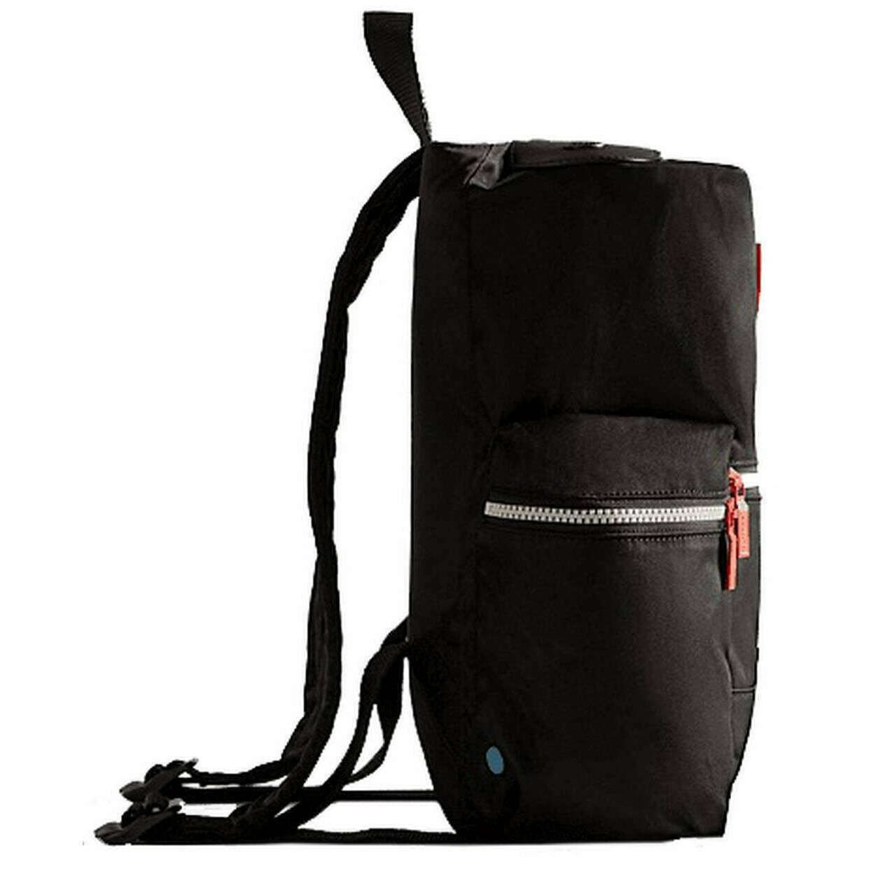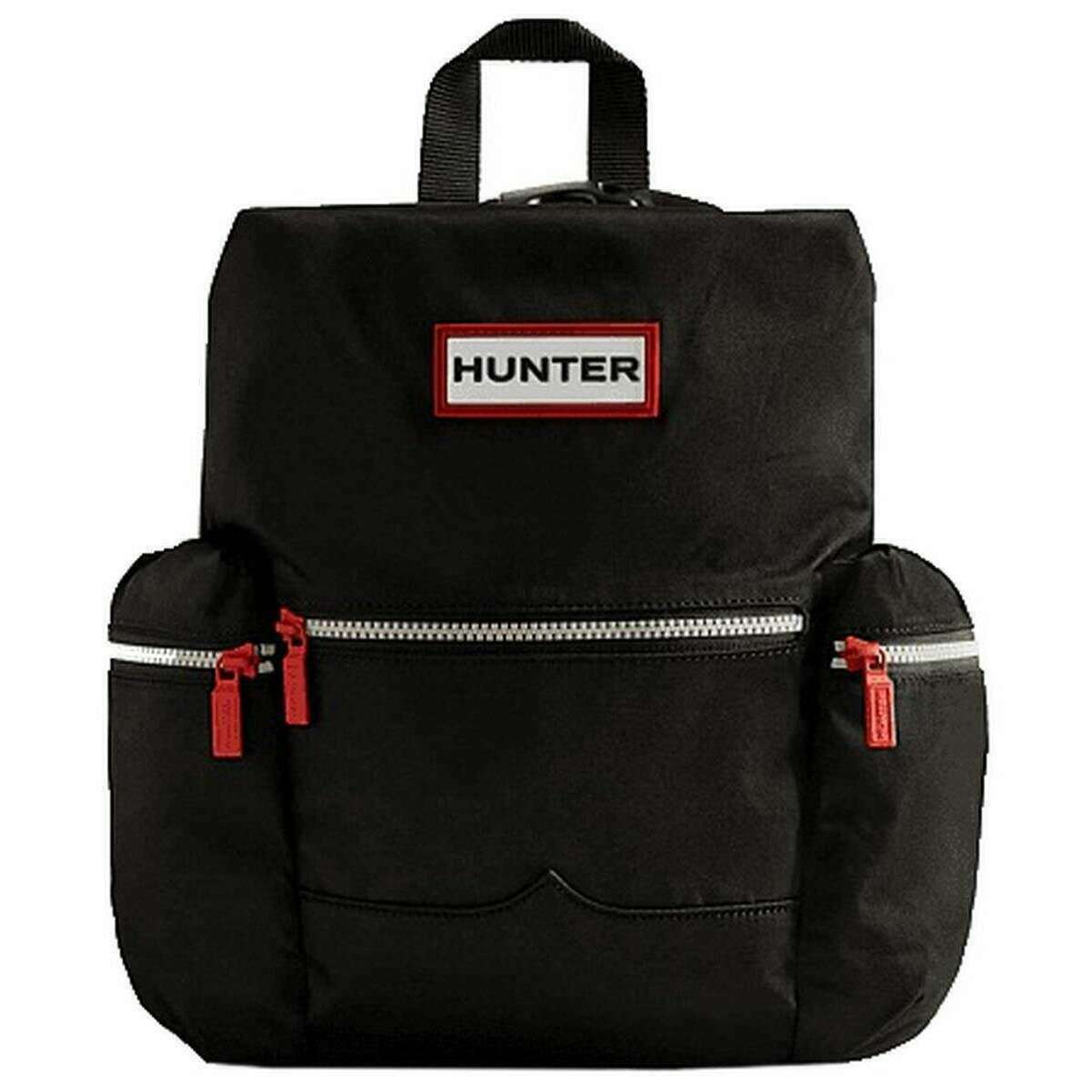 This unisex nylon mini topclip backpack has been made from 100% nylon , featured in a black colour and is from the brand Hunter. It measures 32cm(height) x 23.5cm(width) x 11.5cm(depth). All the bags come complete with hunter packaging. The Hunter Nylon Mini Topclip Backpack - Black features a zipper and buckle closure to ensure a secure wear. This bag has been crafted with fully water-resistant materials to ensure a dry wear in any weathers or accidents. The 13L capacity allows space for all your essentials with the convenient zipper side pockets, internal zipper pocket, and the front zipper pocket. The padded adjustable straps give optimal comfort whilst on your adventures. Completing this sleek and classic look is the Hunter branding on the front and the red zips.