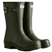 This men's original short wellington boots has been made from 100% rubber, featured in a green colour and is from the brand Hunter. All the wellington boots come complete with hunter packaging. The Hunter Original Short Wellington Boots - Dark Olive offers a versatile mid?calf design inspired by Hunter s iconic Tall Boot. It is handcrafted from 28 natural rubber parts and takes over three days to assemble before being vulcanised for durability and waterproof protection. The boot features a matte finish, a comfortable polyester lining, and the Hunter Original tread pattern for reliable grip. Certified vegan and fully waterproof, it provides everyday comfort and classic style.